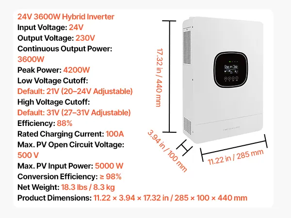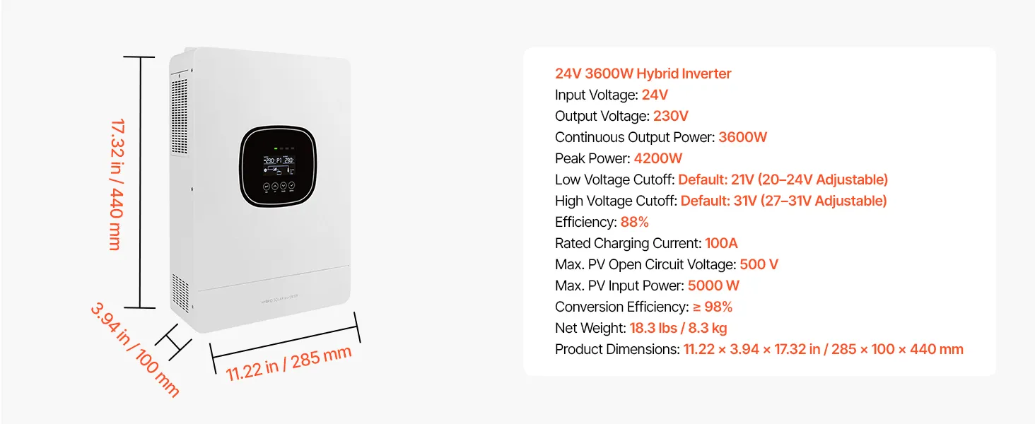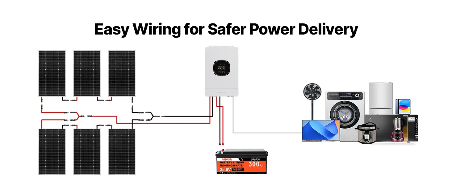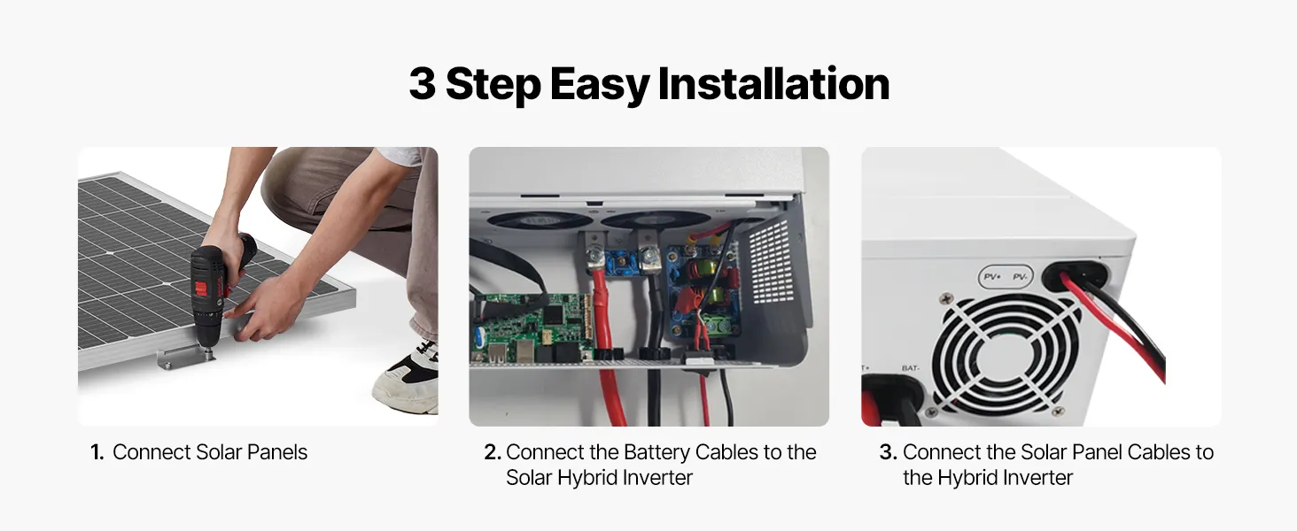 Includes detailed wiring instructions, allowing you to quickly connect the battery, solar panels, and solar hybrid inverter.