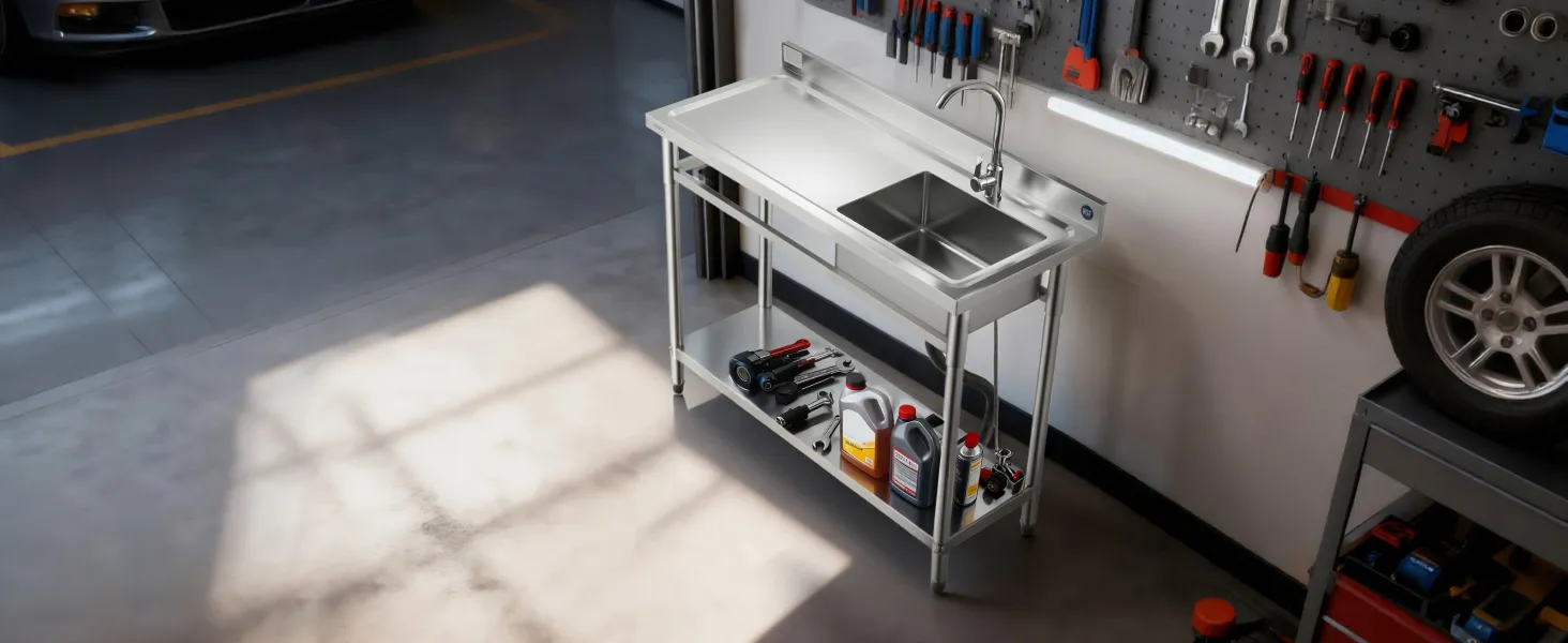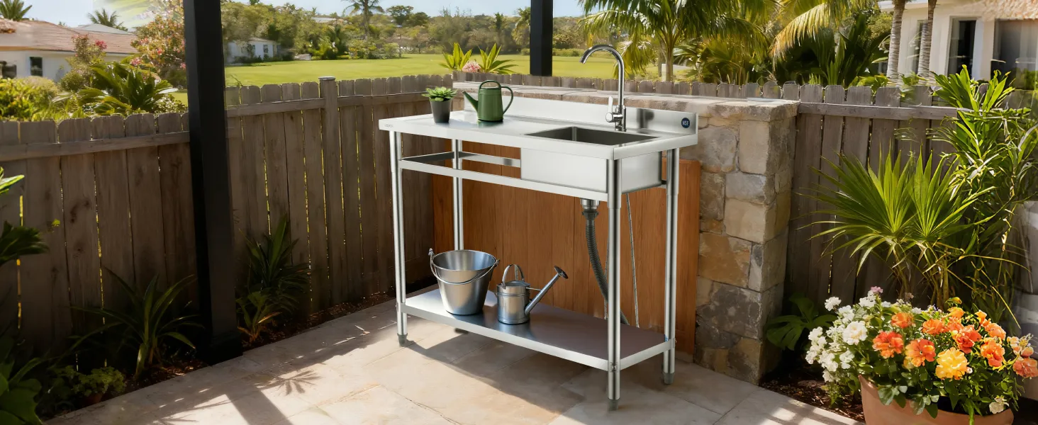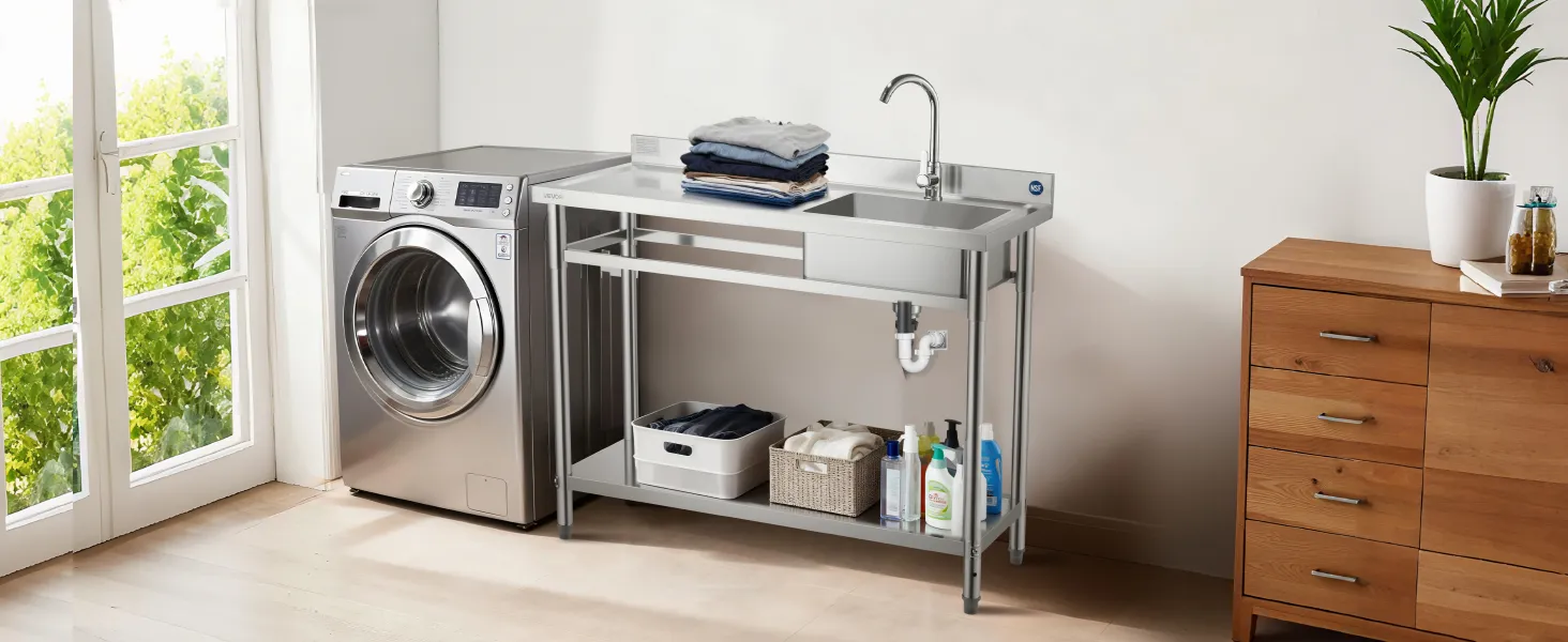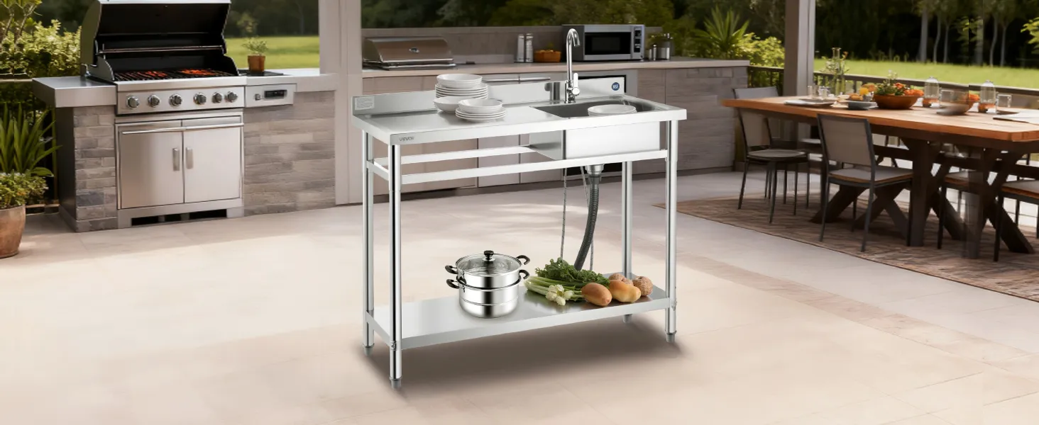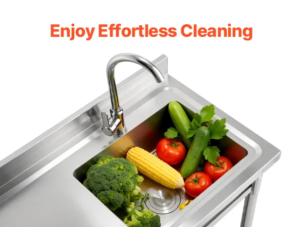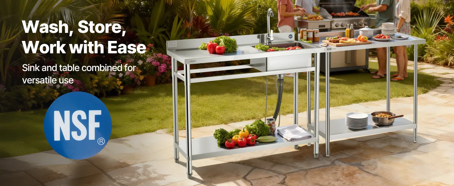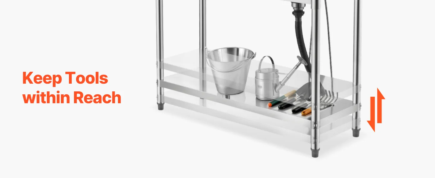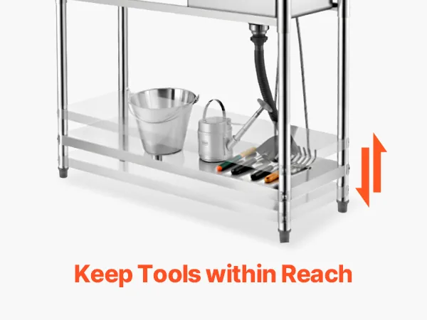 The all-in-one design combines worktable, sink, and adjustable storage shelf, making washing and organizing effortless. The spacious sink handles a variety of cleaning tasks, while the adjustable bottom shelves provide flexible storage for different items, adapting easily to multiple scenarios.