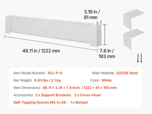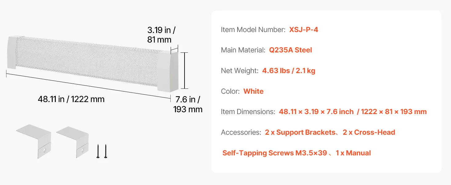 VEVOR 1222 мм біла сталева кришка для плінтусного обігрівача, серія Premium, легке встановлення, термостійка