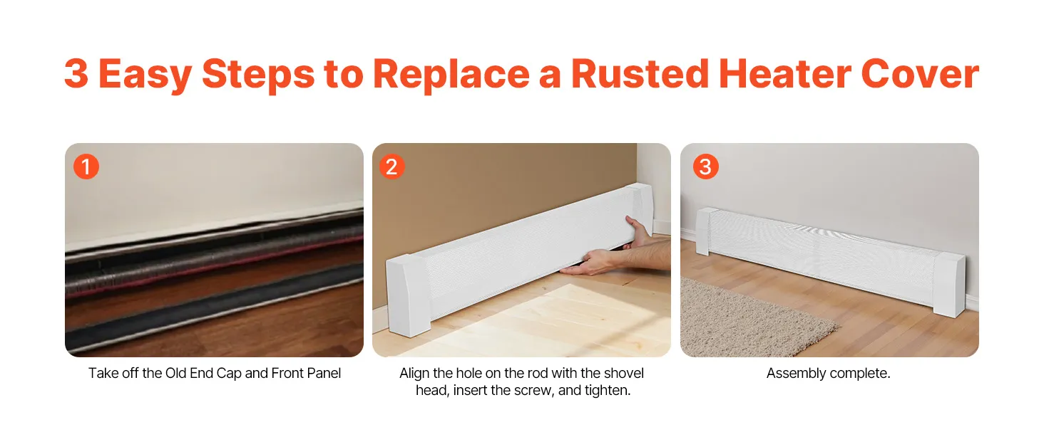 • Hassle-free Installation: The installation process is simple and quick, requiring no professional tools or help. From detaching the old cover to installing the new baseboard heater cover, every step is clear and easy, saving you time and effort