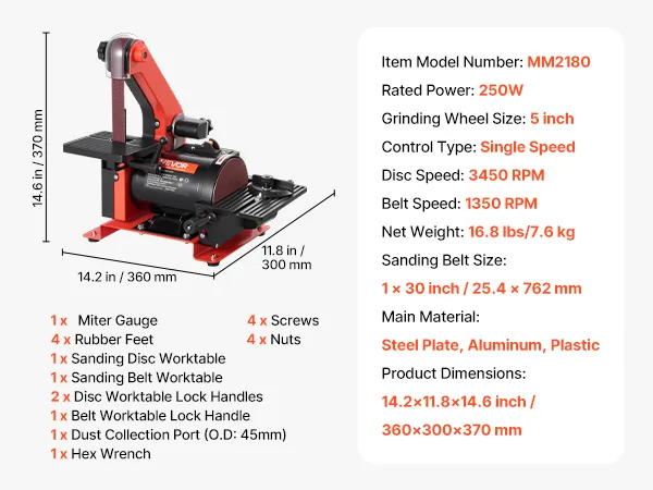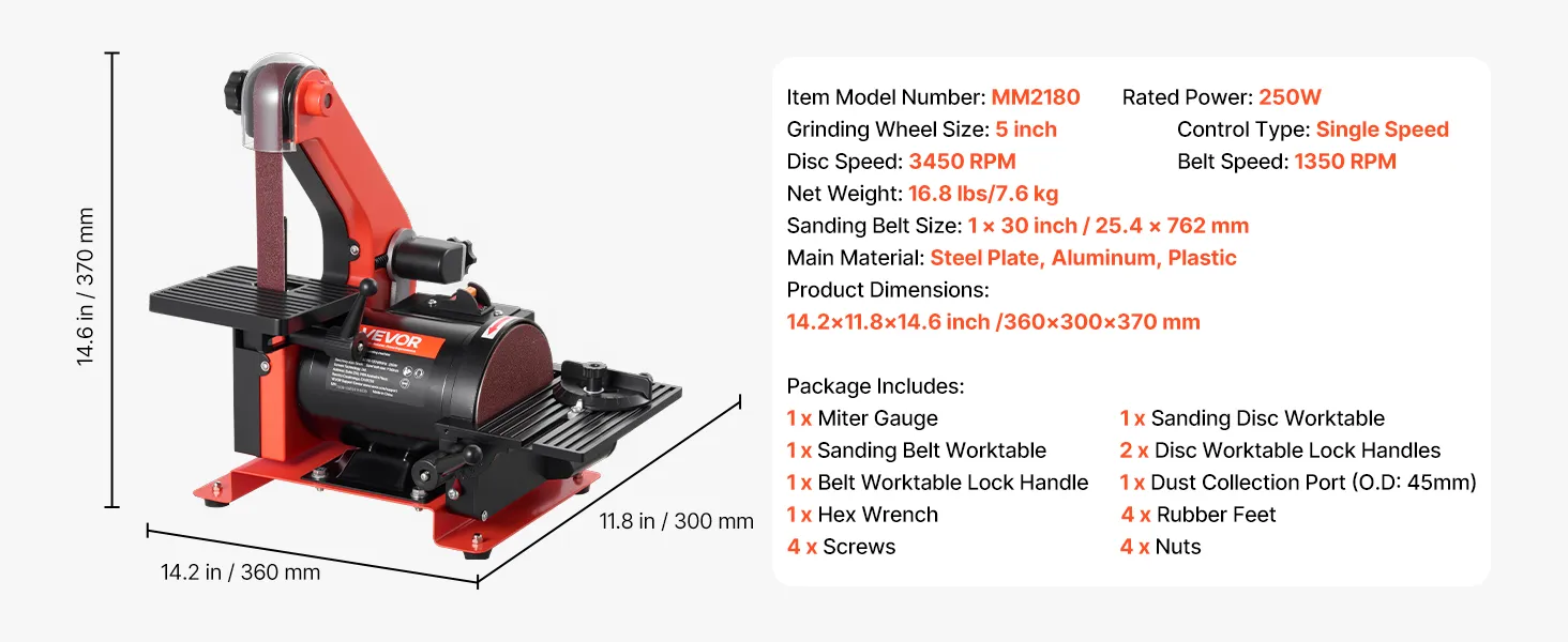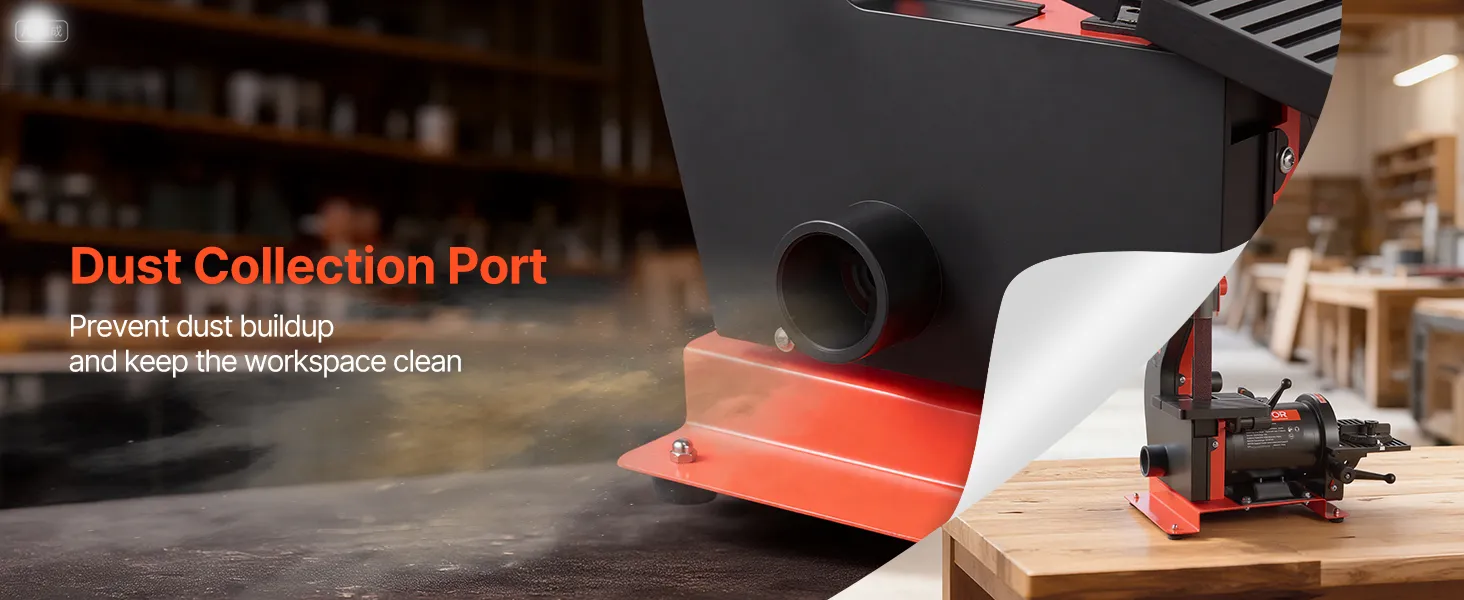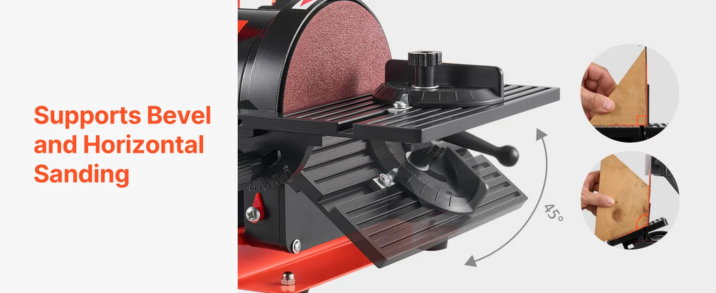 Achieve smooth sanding results with our 5" disc & 1" x 30" belt sander combo. It features a 0–45° tilting worktable for precise angle sanding and built-in dust collection ports for a cleaner workspace. Ideal for sanding, smoothing, and refinishing wood, furniture, and DIY woodworking projects.