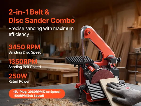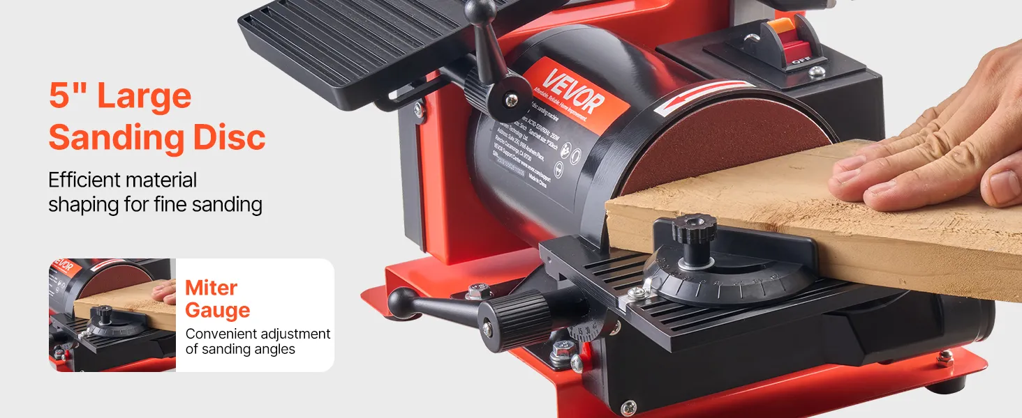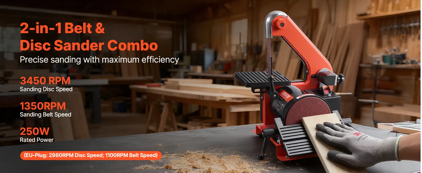 VEVOR 125mm Disc Sander & 25mm x 762mm Belt Sander, 250W Benchtop Belt Disc Sanders Combo with 0–45° Adjustable Worktable & Dust Collection Port for Woodworking, Furniture Refinishing, DIY Crafting