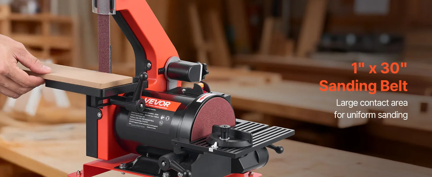 1" x 30" sanding belt provides a large working surface for uniform sanding, ensuring smooth, even and high-quality finishes.