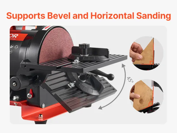 0 - 45° tilting disc worktable supports bevel and horizontal sanding, offering greater flexibility to handle different workpiece shapes and contours, ensuring smooth and uniform sanding results.