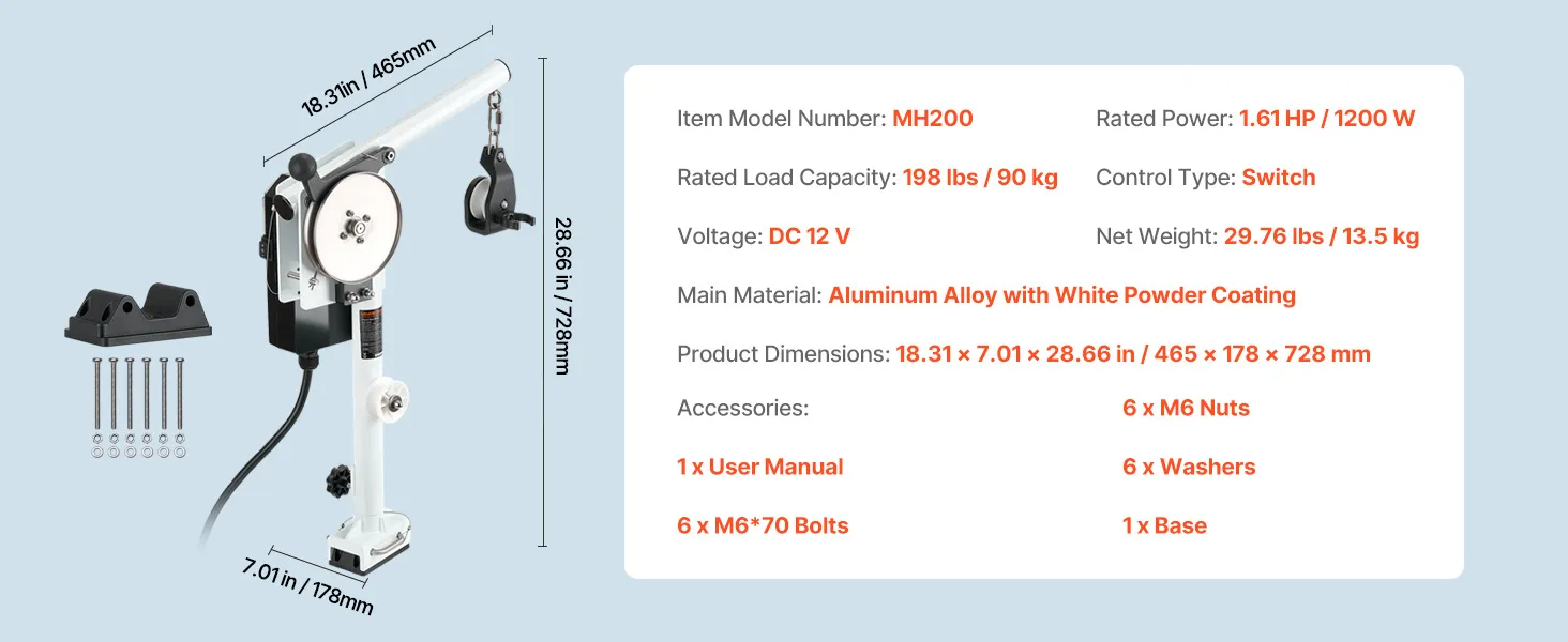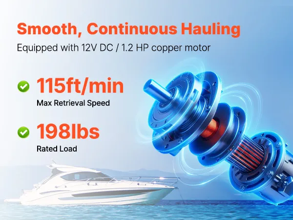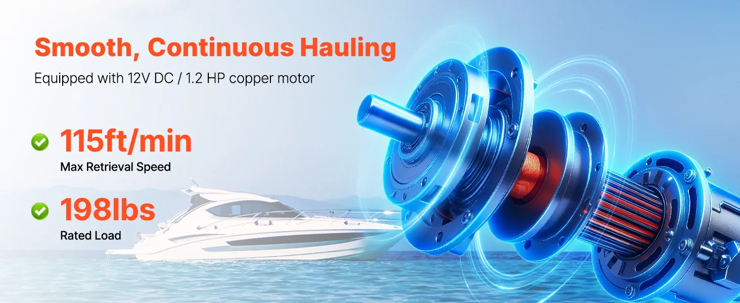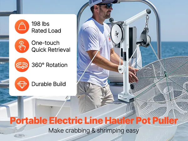 • Strong Pulling Power: A 1.2HP (12V) copper motor of the crab pot puller delivers up to 198 lbs pulling force, giving you strong and steady power to haul multiple crab and shrimp pots with confidence