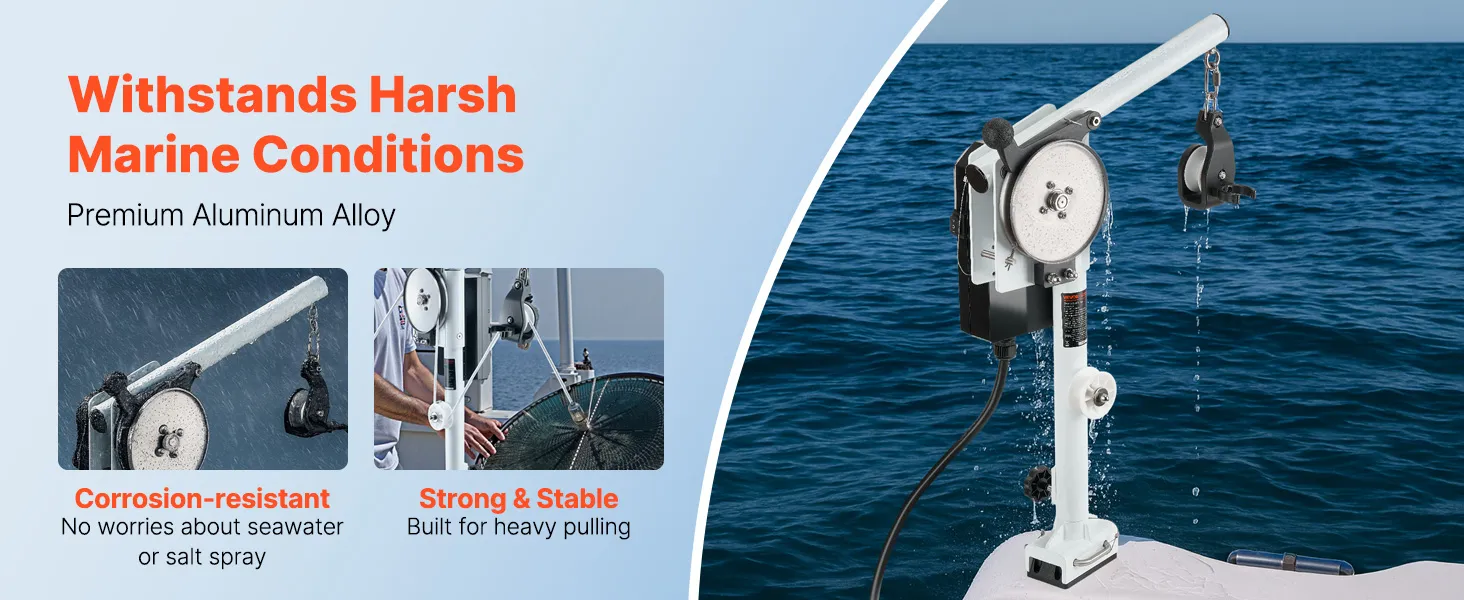 • Durable Build: The aluminum alloy body resists harsh marine conditions with strong corrosion protection. Our line hauler pot puller is built to handle saltwater use and last through many fishing seasons