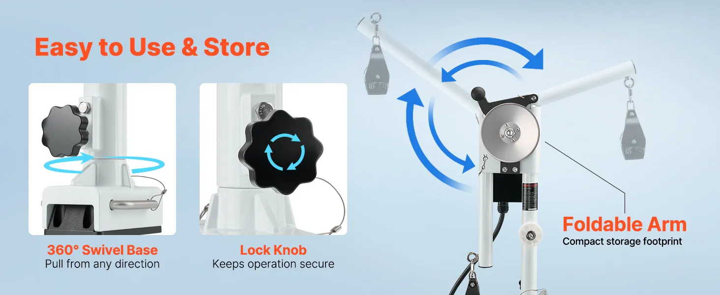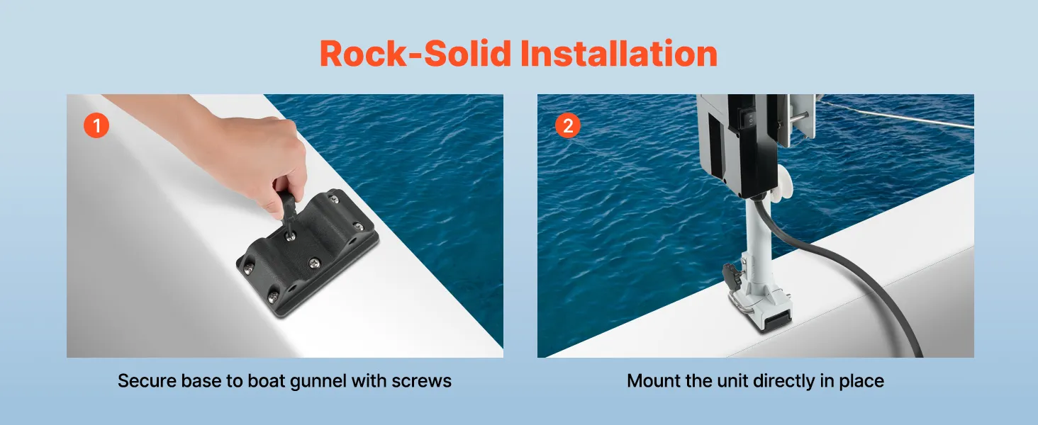 • Flexible Operation: The base of the line hauler rotates 360° for easy positioning and locks with a knob at any angle. A foldable boom saves space on deck and makes storage simple after every trip