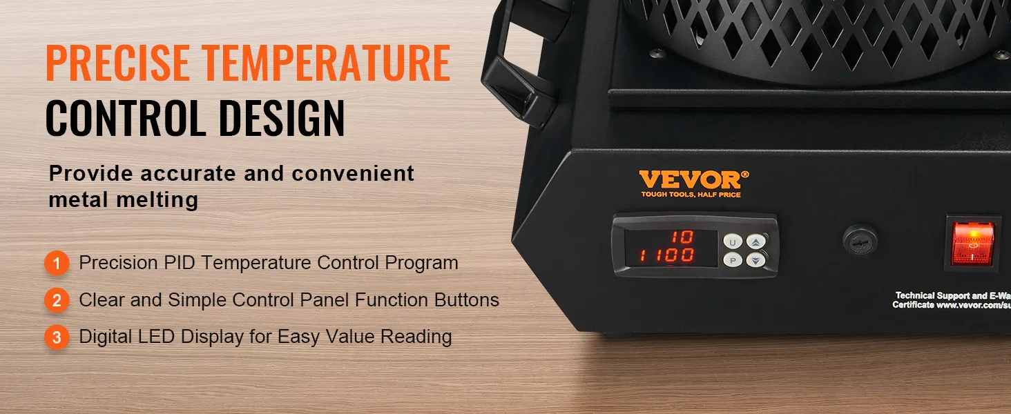 Designed with a PID digital control system, this electric melting furnace monitors and adjusts the temperature in real time. With just four buttons on the control panel and a clear digital LED display, it delivers precise temperature control, even for beginners.