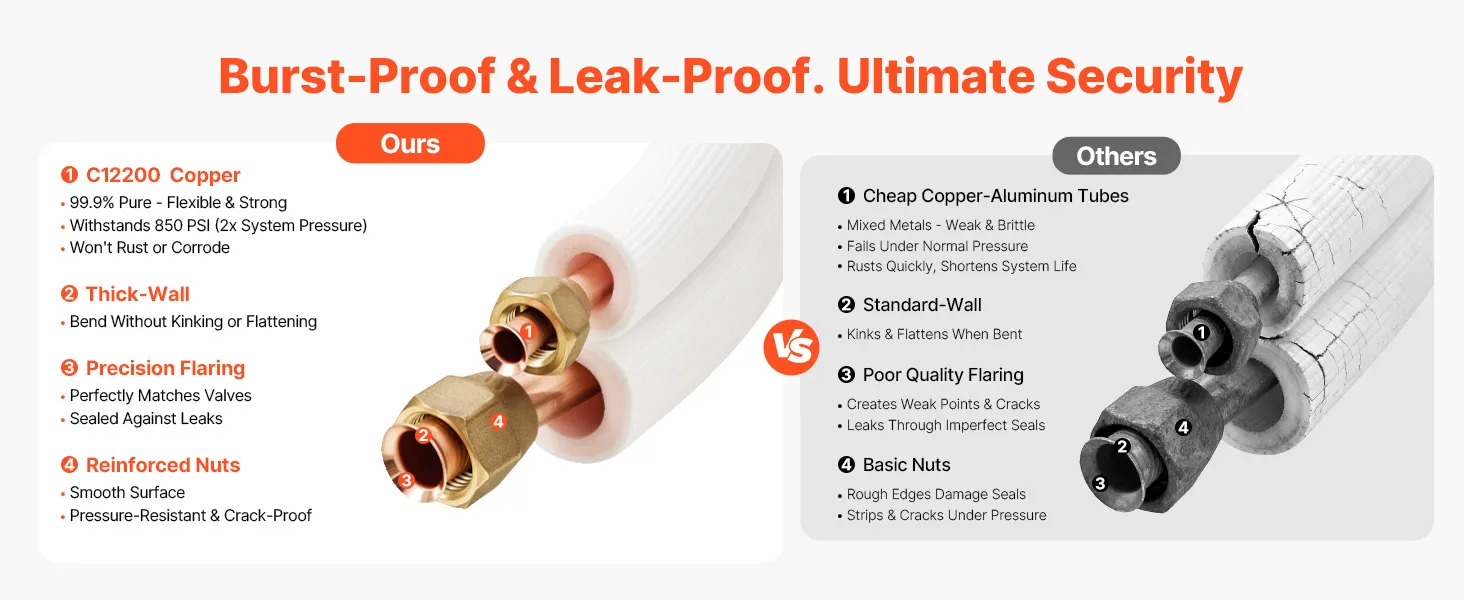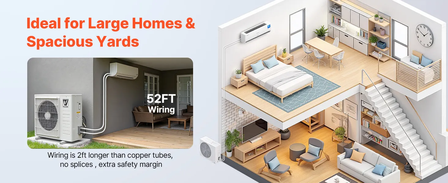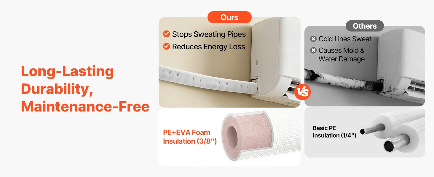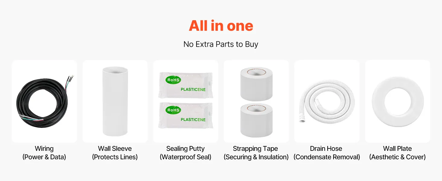 The kit is compatible with mini-split air conditioners. High-purity tubing resists kinking and leaks, ideal for garage or workshop installations. Includes strapping tape and all accessories for immediate use. Simple setup requires only basic tool skills to connect indoor and outdoor units.