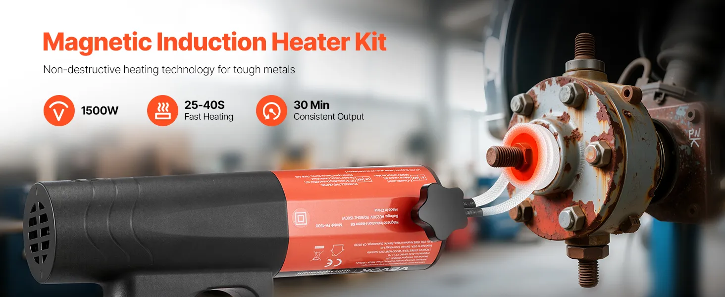 VEVOR Induction Heater Bolt Removal, 1500W 230V Magnetic Induction Heater Kit, Handheld Nut Buster Tool, Mini Heating Machine for Rusty Screw Removing, Car Garage Repairing Tools with 8 Coil and Box