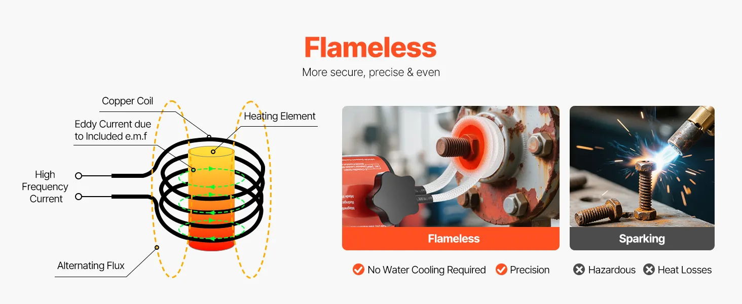 No flames are needed, preventing the potential hazards of traditional heating methods and minimizing the impact on surrounding parts. No water cooling required, and operation does not need professional certification.