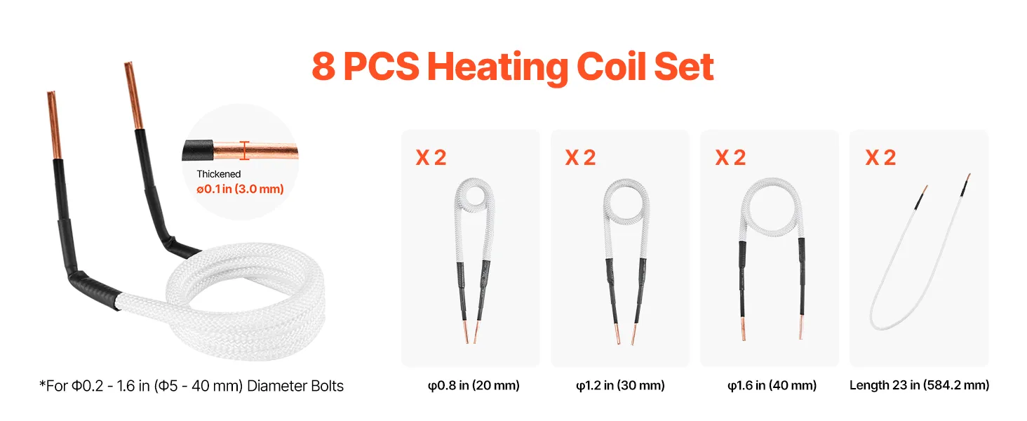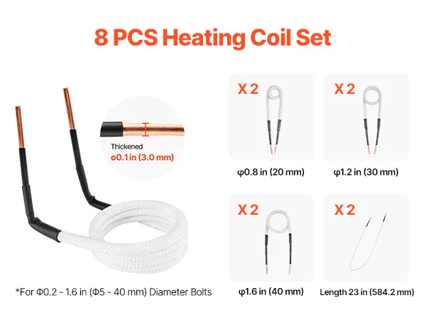The bolt heater tool comes with multiple coils that easily handle irregular workpieces. Whether it's small screws or larger bearings, it provides precise heating. The purple copper conductive wire is more efficient, and the glass fiber insulation layer offers superior resistance to breakage.