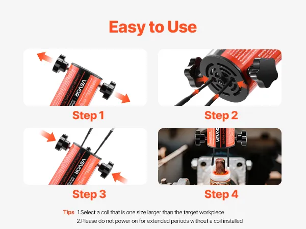 Simply loosen the two side nuts on top to easily replace the coils. The induction bolt heater tool locks securely and is not easy to loosen.