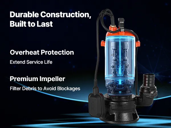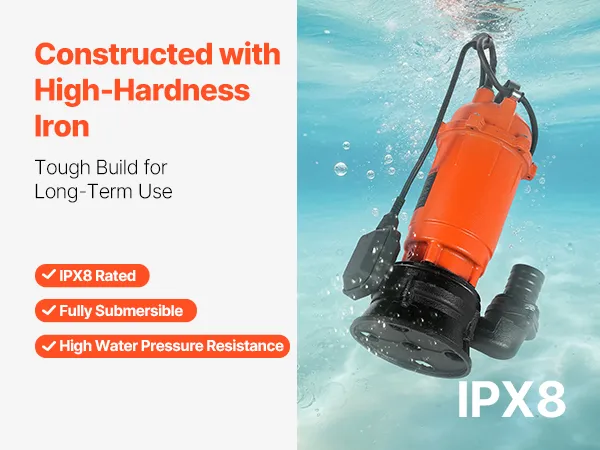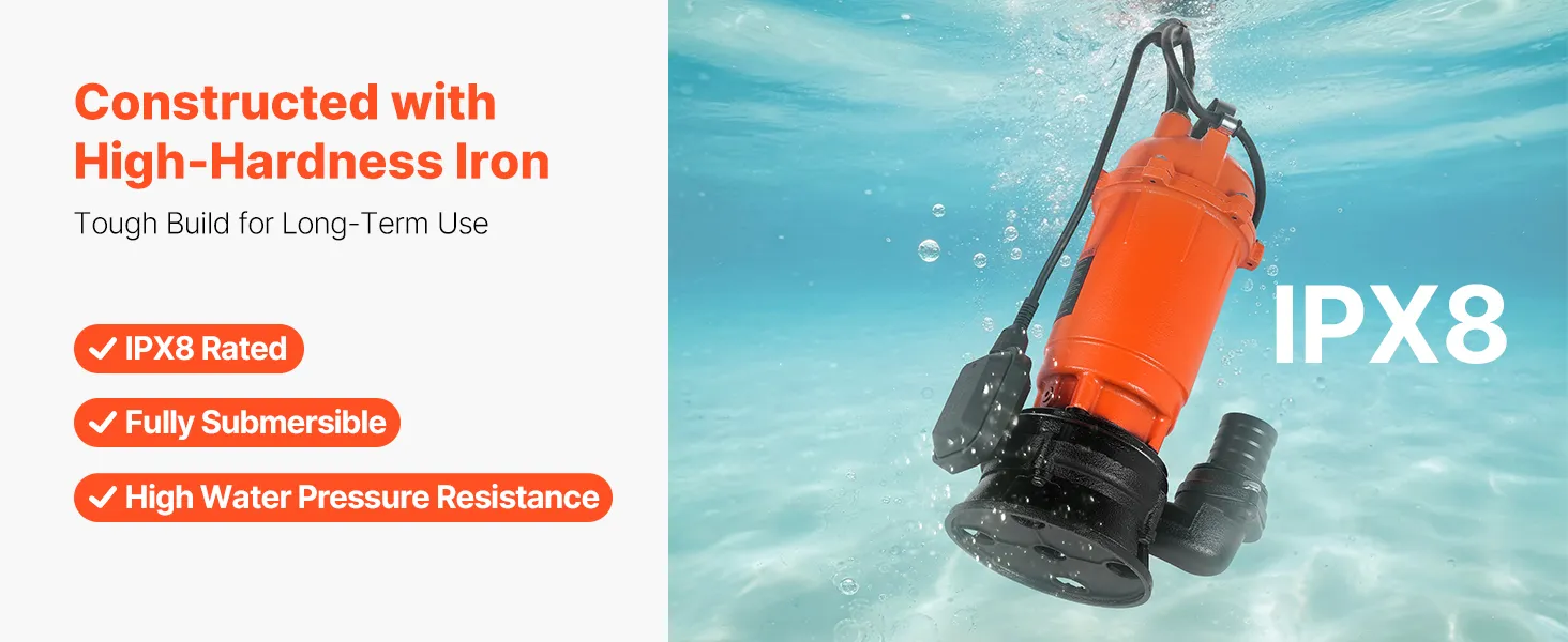 Constructed from high-strength iron, the housing boasts IPX8-rated sealing for superior waterproof protection. This submersible sump pump resists prolonged submersion and withstands high water pressure without compromise.