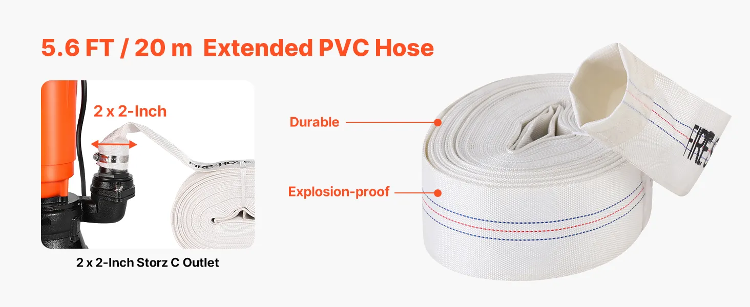 Comes with a heavy-duty PVC hose built to last, featuring burst-resistant construction. This electric trash pump ensures reliable, long-term operation in demanding conditions.