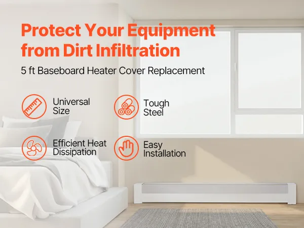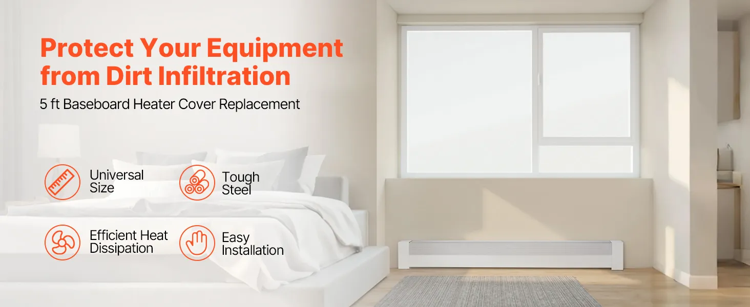 This baseboard heater cover replacement fits various heaters, made from sturdy steel with a powder-coated finish for easy cleaning. The efficient ventilation avoids overheating and ensures even heat distribution. Easy to install, its sleek white design complements any home decor.