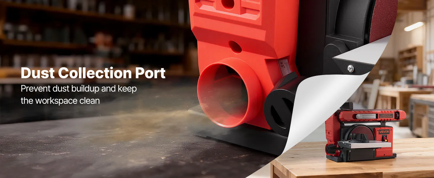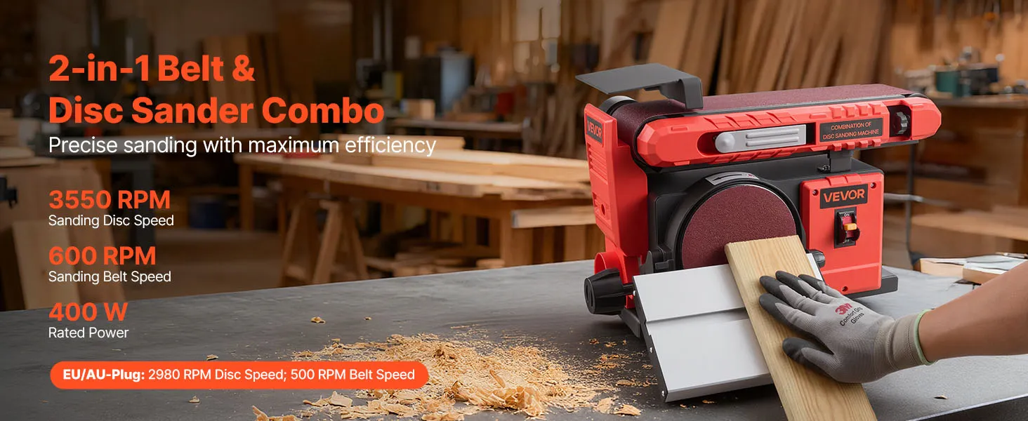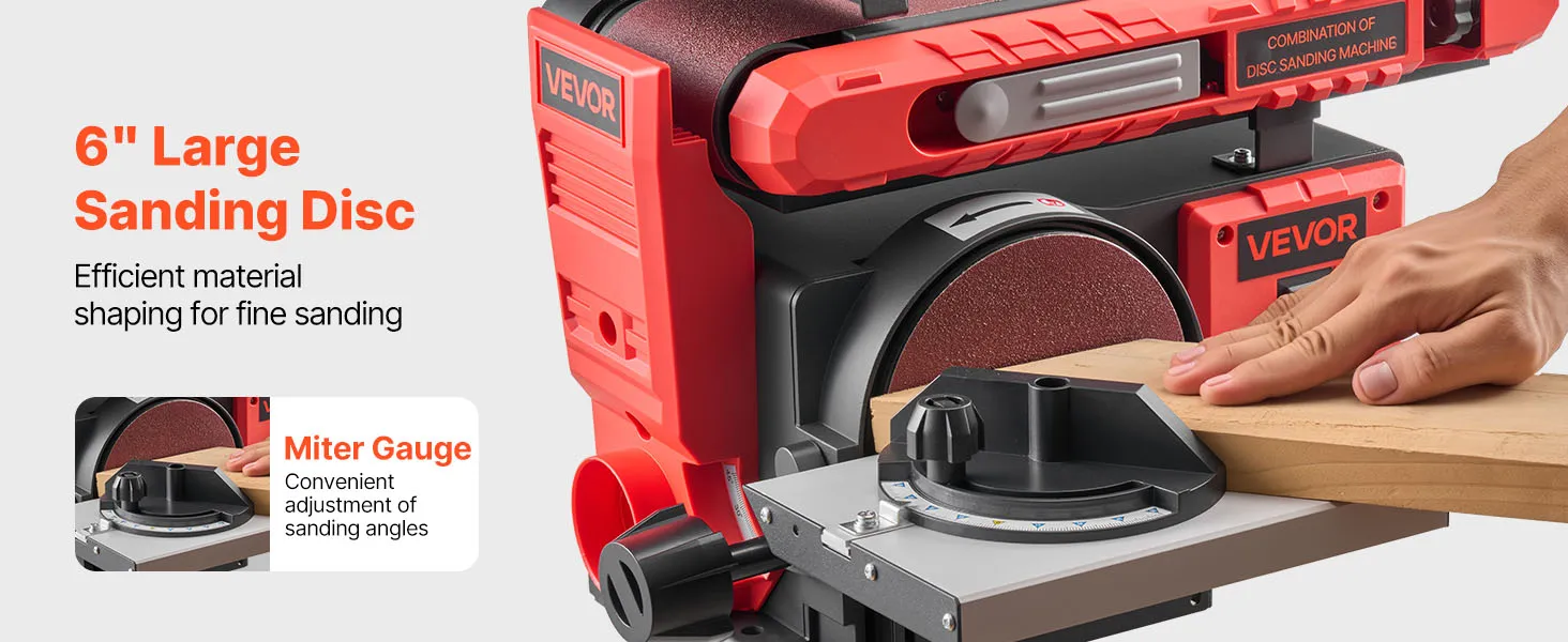 VEVOR 152.4mm Disc Sander & 101.6mm x 914.4mm Belt Sander, 400W Professional Belt Disc Sanders Combo with 0 - 45° Adjustable Worktable, Dust Collection Port for Woodworking & DIY Crafting