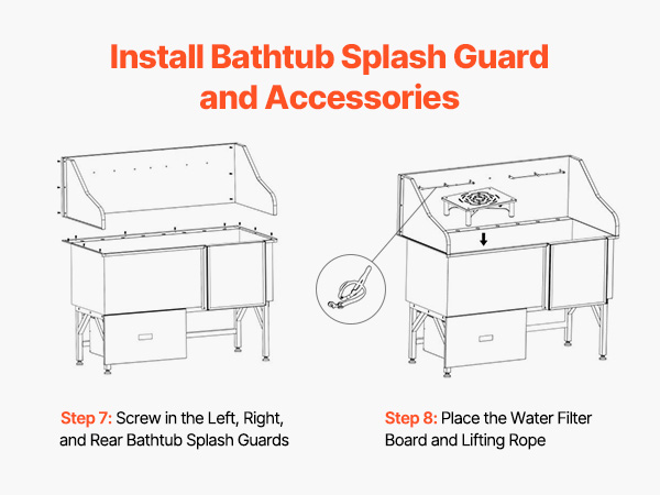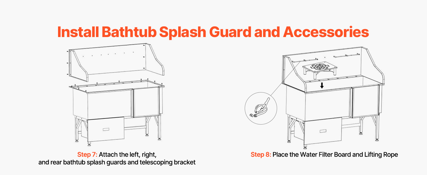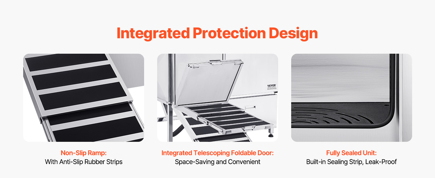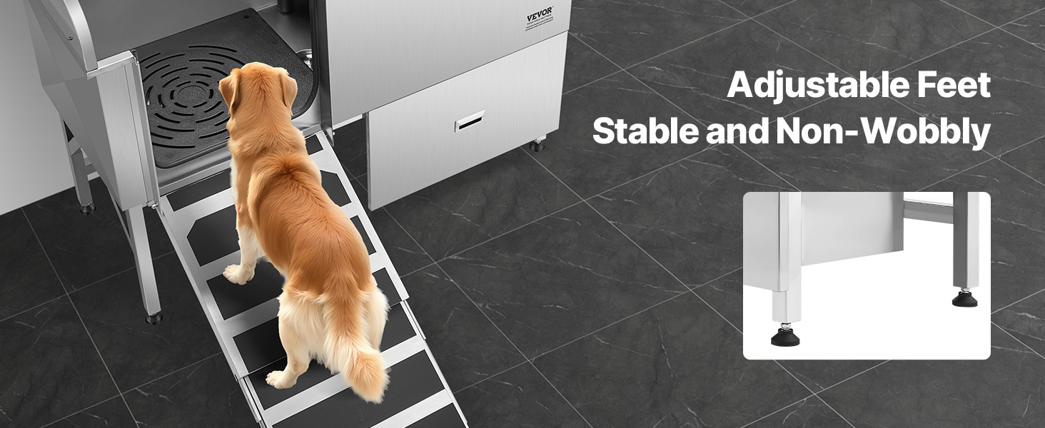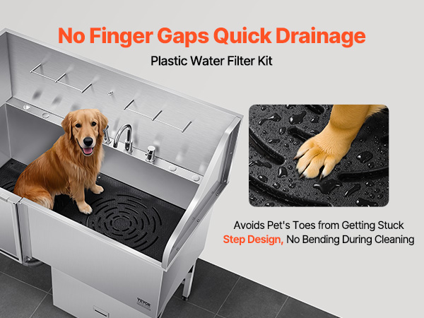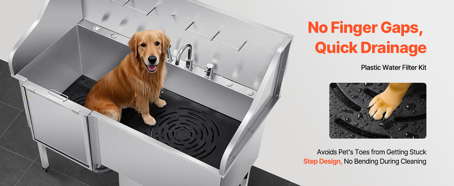 With seamless one-piece welding and built-in sealing strips, this tub ensures no water leakage. Made from stainless steel, it is corrosion-resistant and sturdy, maintaining its new look over time. The tub features smooth edges, ensuring security for both pets and users during bathing.