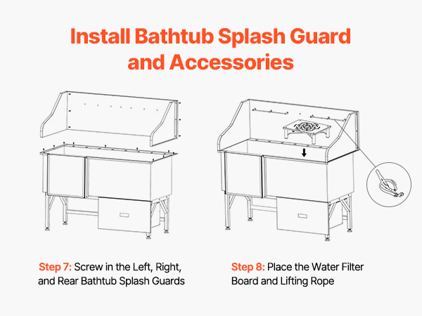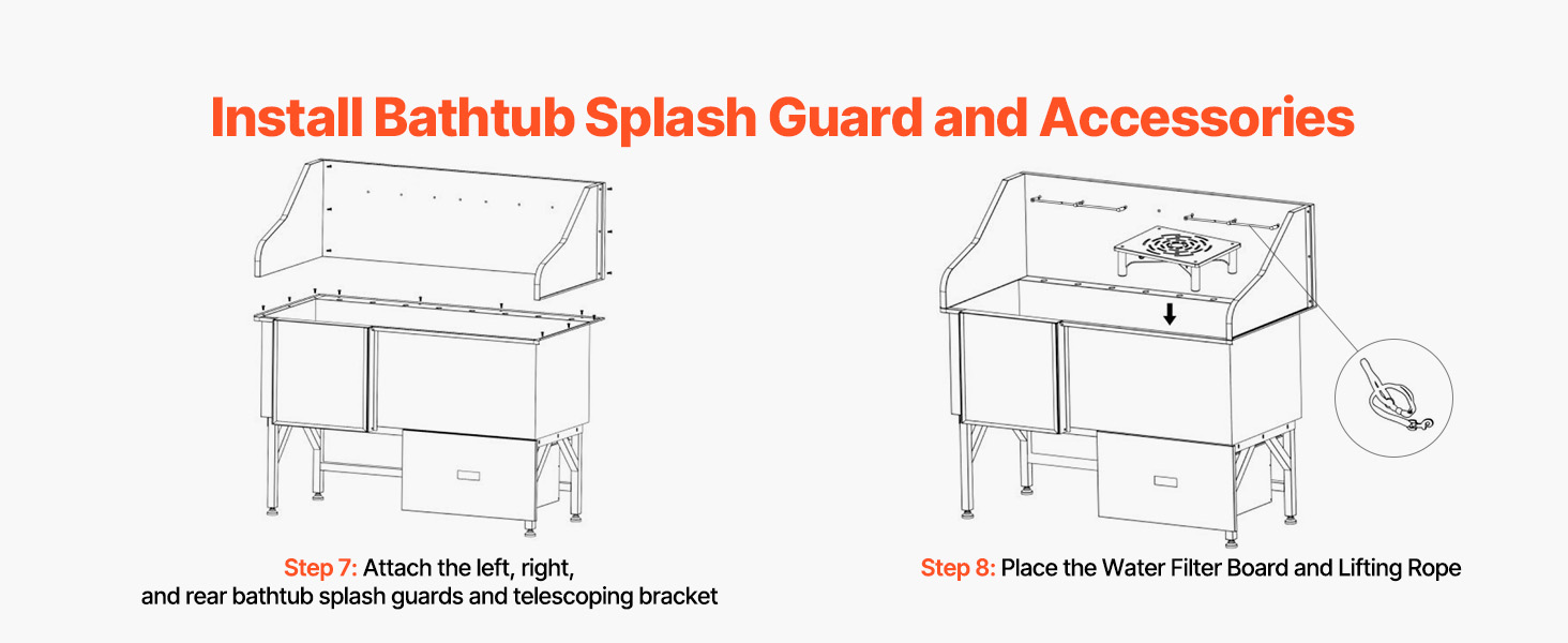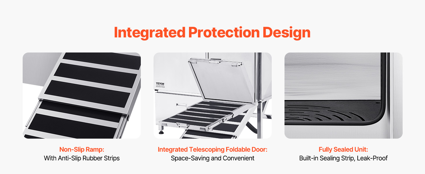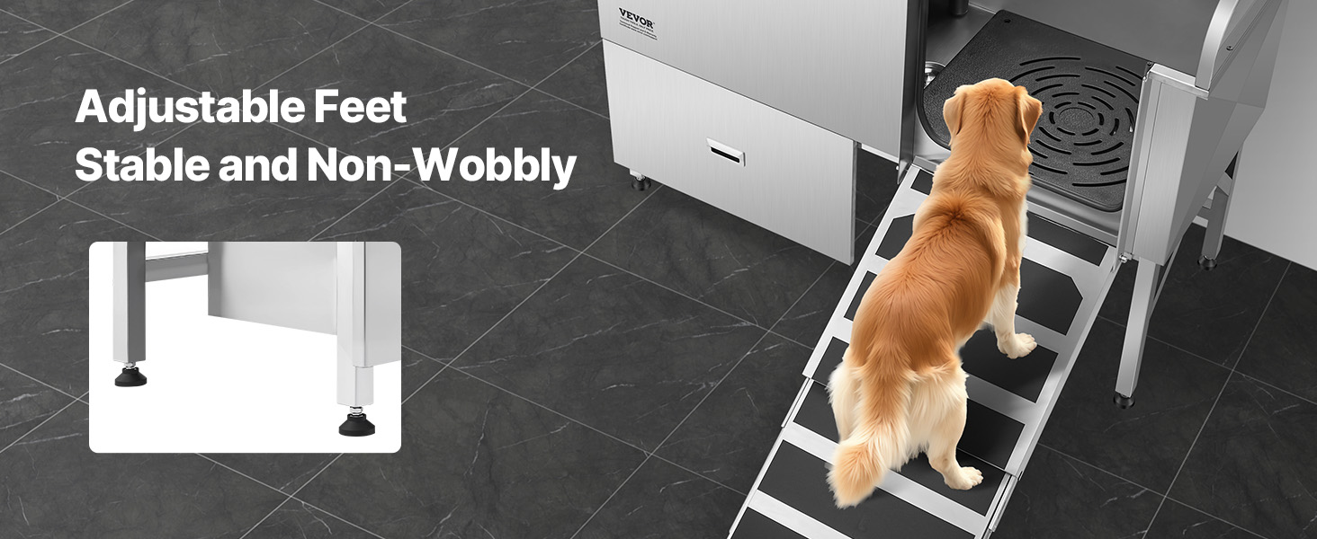 With seamless one-piece welding and built-in sealing strips, this tub ensures no water leakage. Made from stainless steel, it is corrosion-resistant and sturdy, maintaining its new look over time. The tub features smooth edges, ensuring security for both pets and users during bathing.