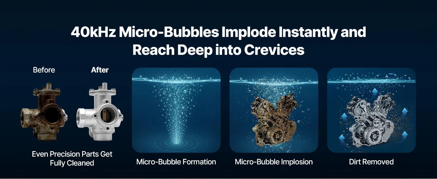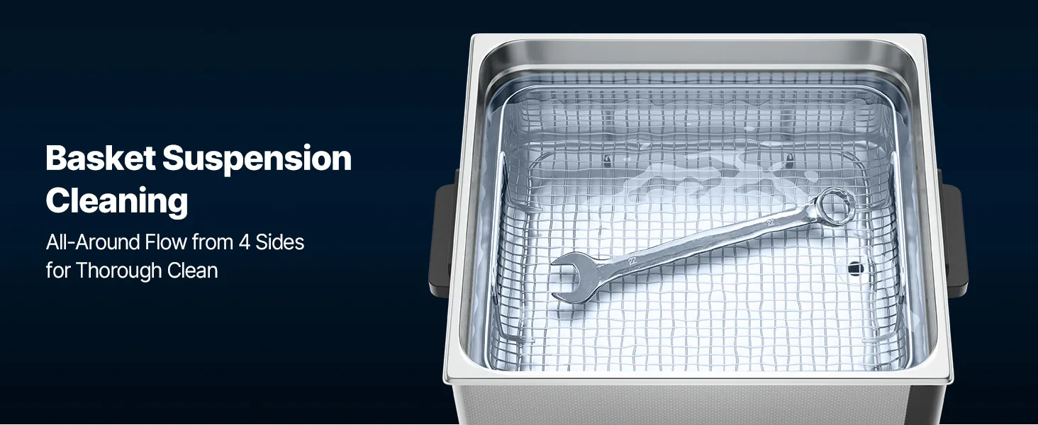 A3: The high-frequency vibration sound during cleaning is normal. Using the cleaning basket with the lid on and placing the unit on the floor or a heavy workbench can help reduce noise. Staying a short distance away during operation can also improve your experience.
