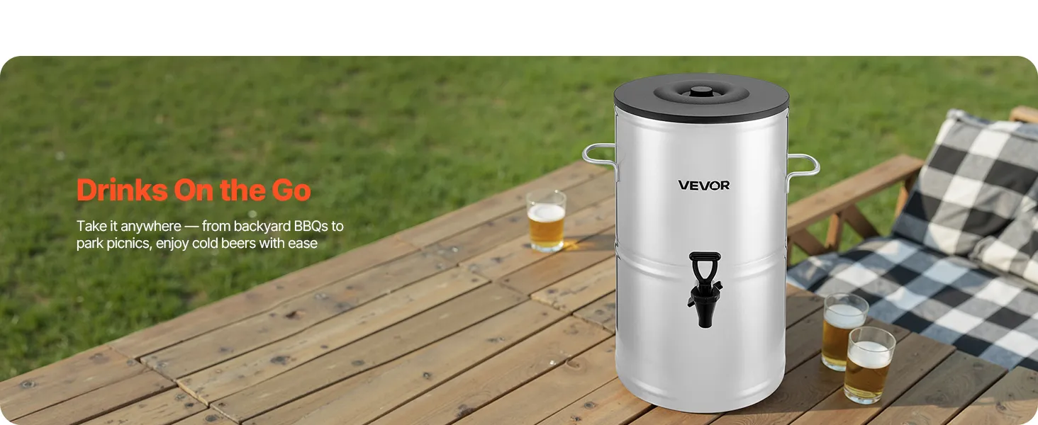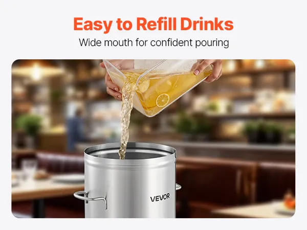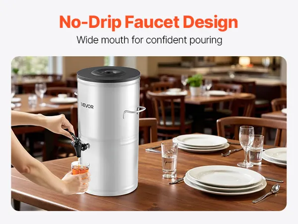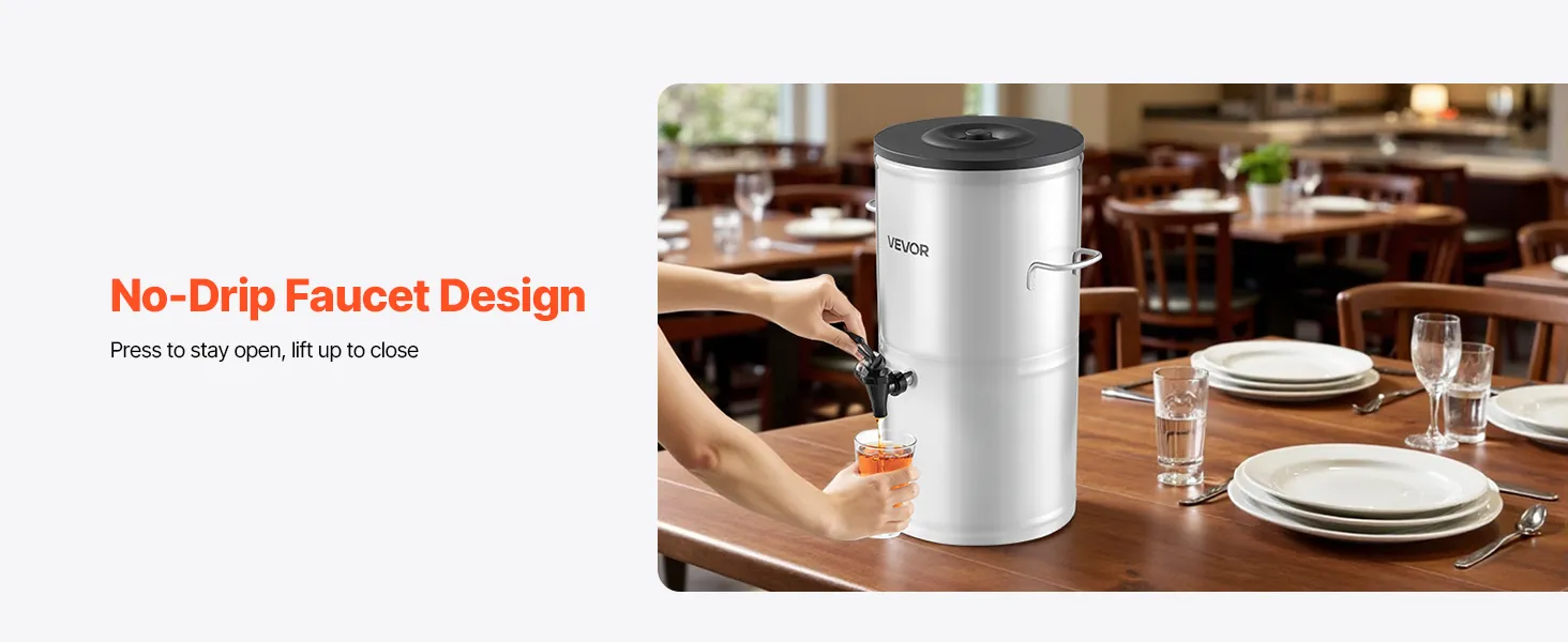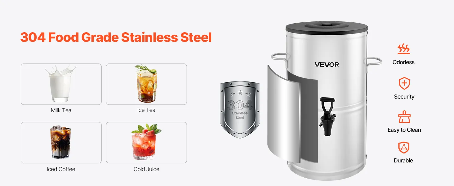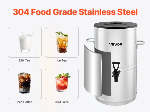 VEVOR Ice Tea Dispenser, 4 Gal/15L 304 Stainless Steel Beverage Dispenser with Spigot & Handle, Suitable for Hot and Cold Drinks, for Iced Tea Coffee Water in Cafes & Restaurants