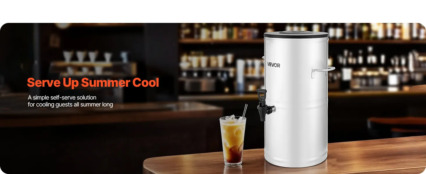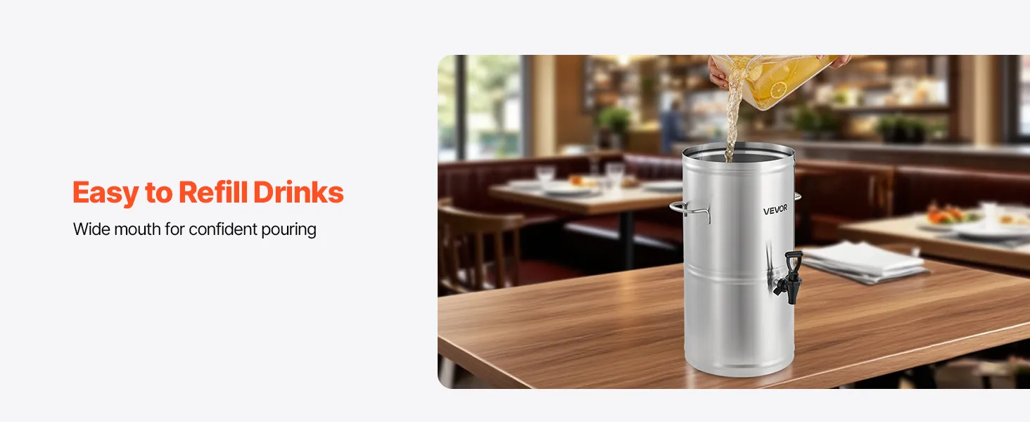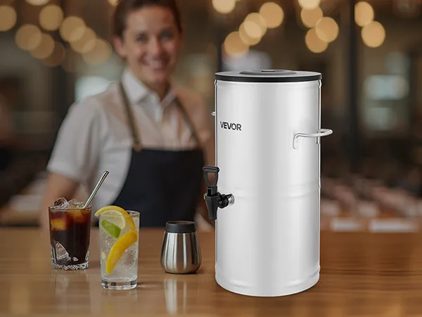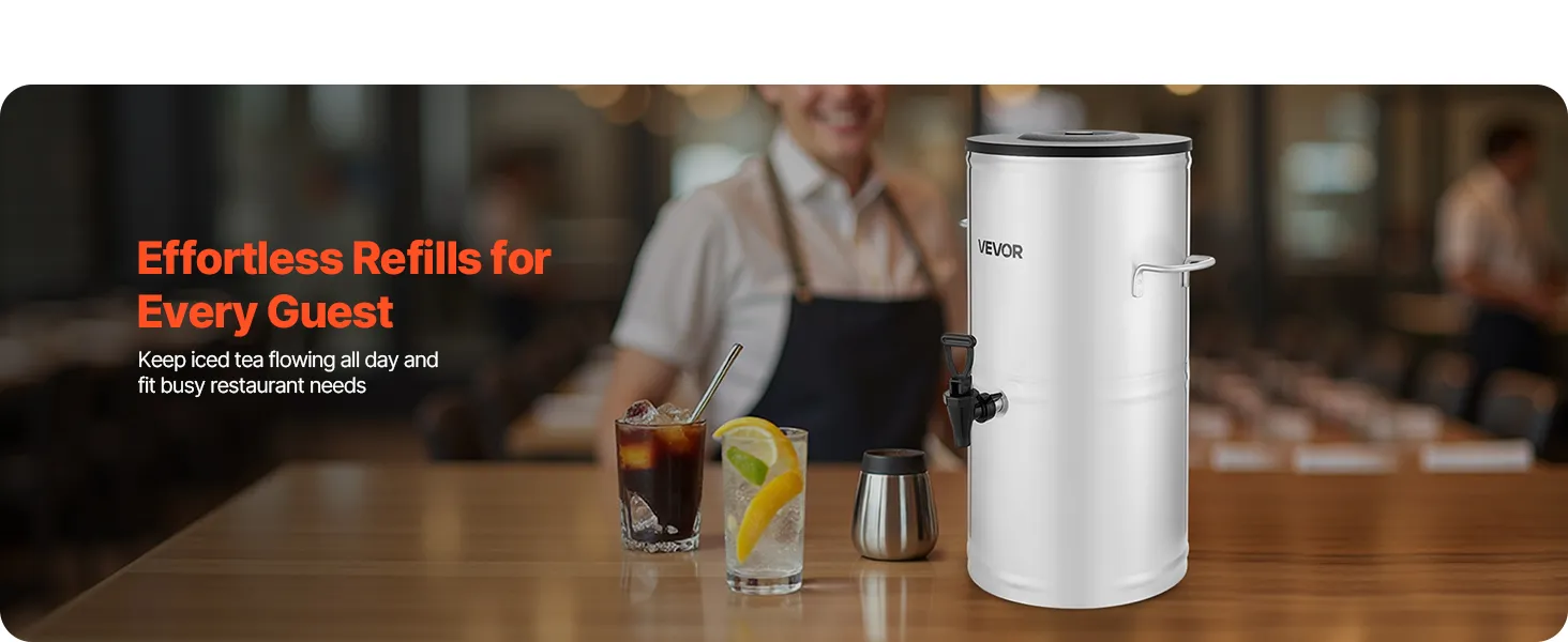 With a 4-gallon (15L) capacity, this ice tea dispenser easily handles high-demand periods, making it perfect for continuous self-service of iced tea, juice, and other cold beverages in restaurants and beverage shops.