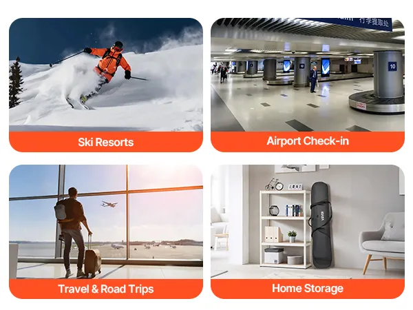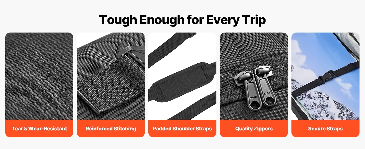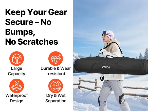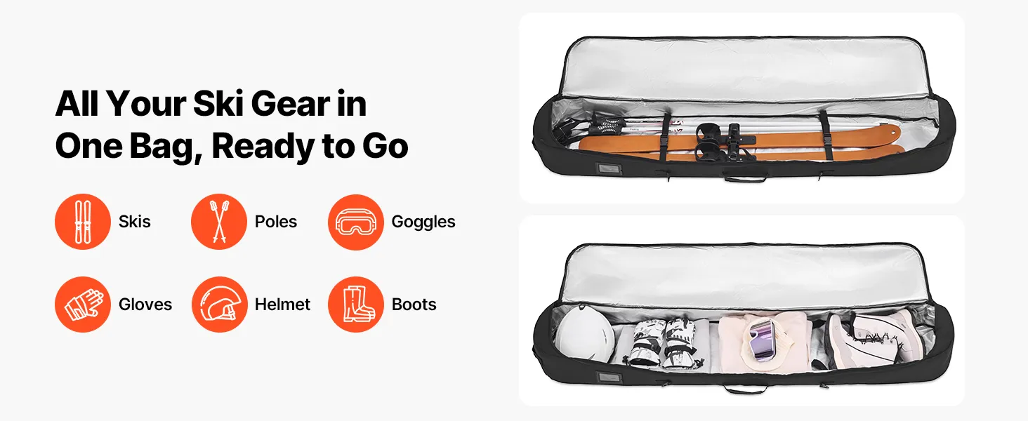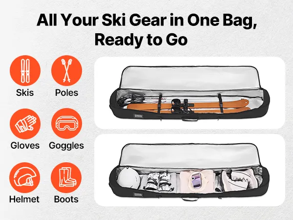 With spacious storage and multiple compartments, made of waterproof and wear-resistant Oxford fabric, our snowboard travel bag for air travel is easy to carry by hand or shoulder. Fits all your ski gear in one bag.