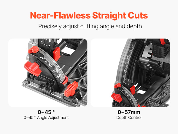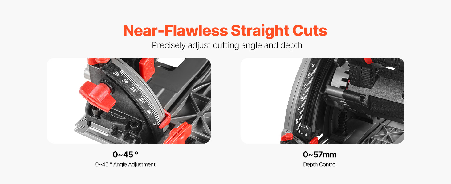 This plunge circular saw kit easily adapts to various cutting angles for complex designs like bevels, miters, and custom wood joinery.