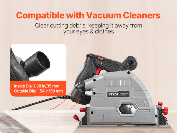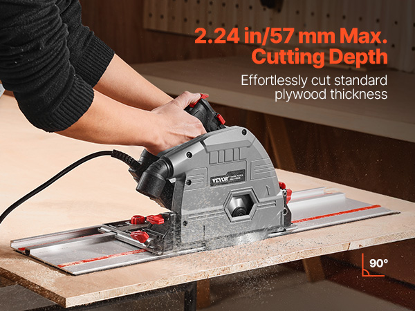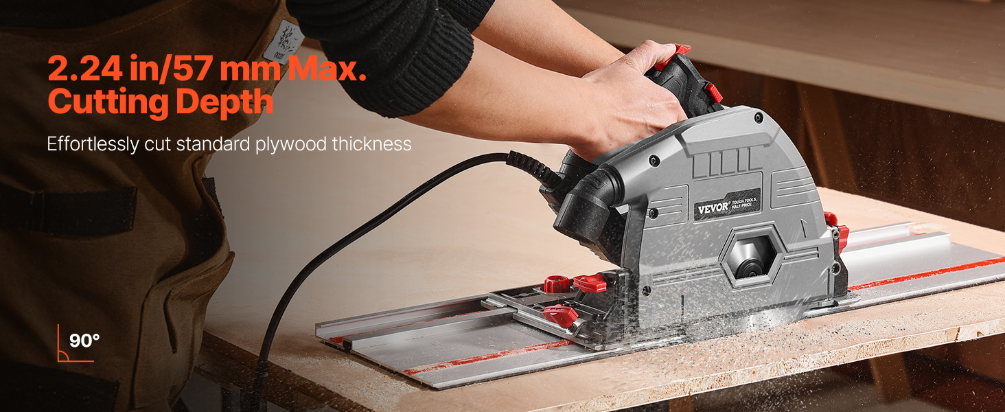 VEVOR Track Saw, 165 mm(6.5-Inch), Plunge-Cut Circular Saw Kit, Tracksaw with 50-Tooth Carbide-Tipped Blade, 0-45° Angle Adjustment, 57 mm(2.24 in) Cutting Depth, for Wood, Plastic, Metal, Guide Rail Not Included