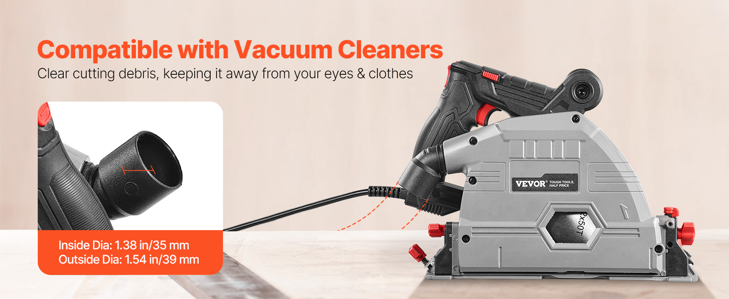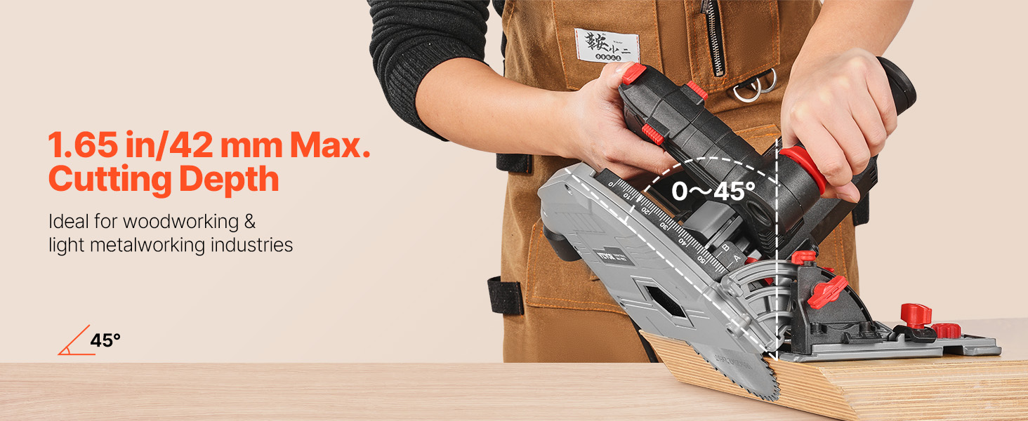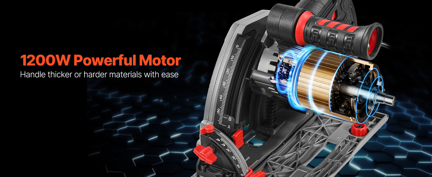 This track saw is a robust table saw alternative. With a 1200W, 4500 RPM motor and a 6.5 in, 50-tooth blade, it cuts various materials with ease. Featuring a 2.24 in vertical and 1.65 in 45° bevel depth, plus a dust port for a clean workspace, it's ideal for pros and DIYers.