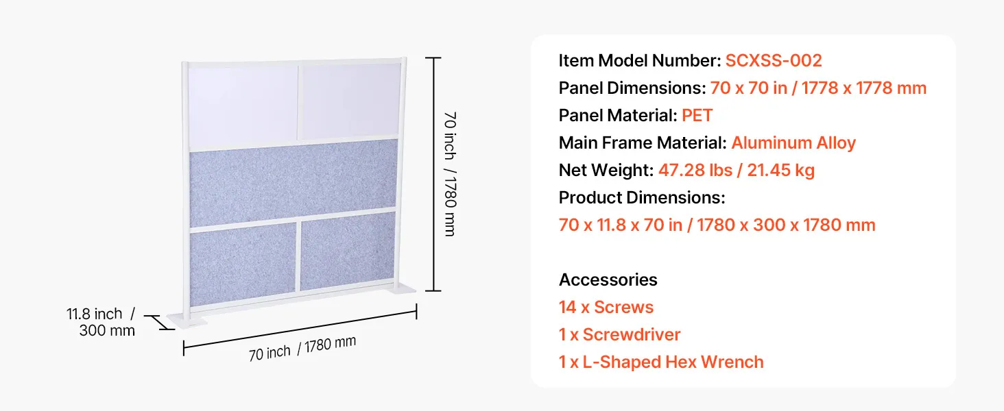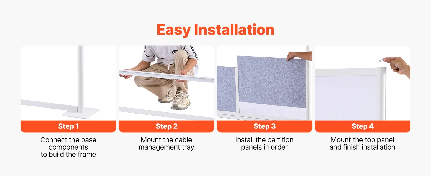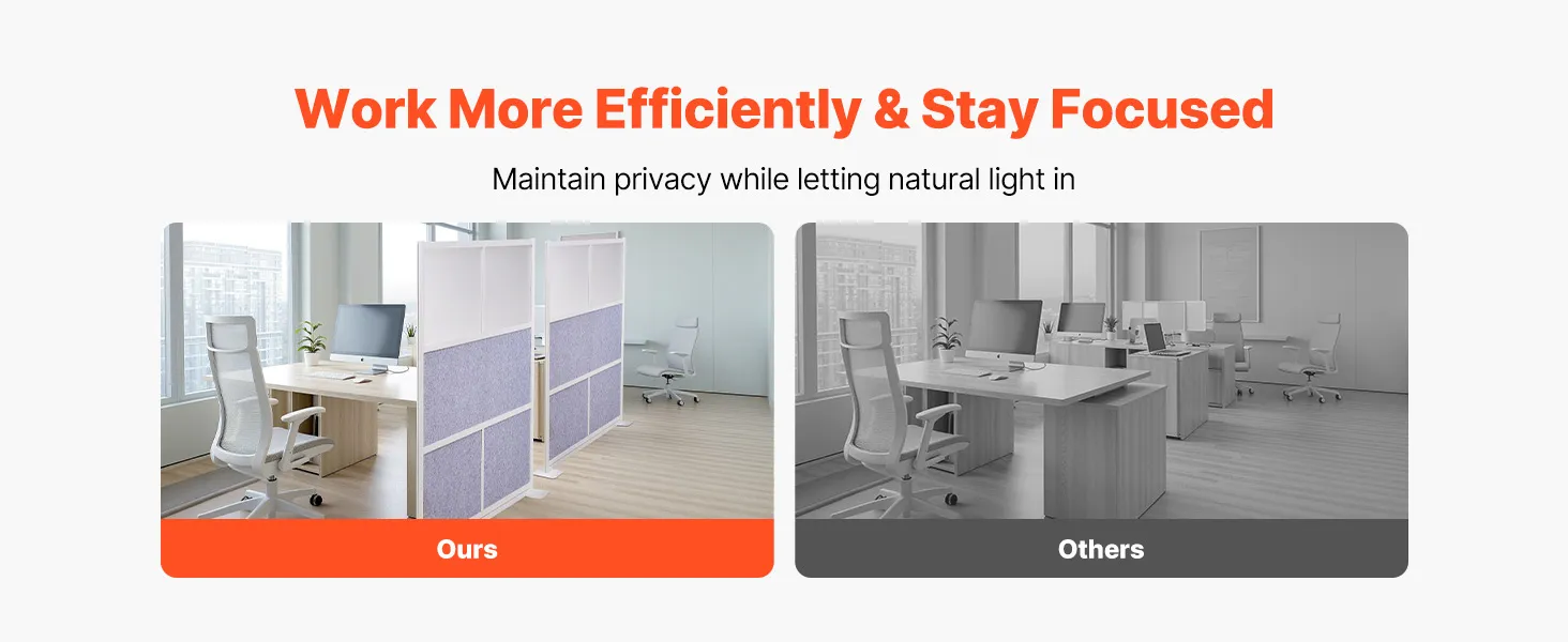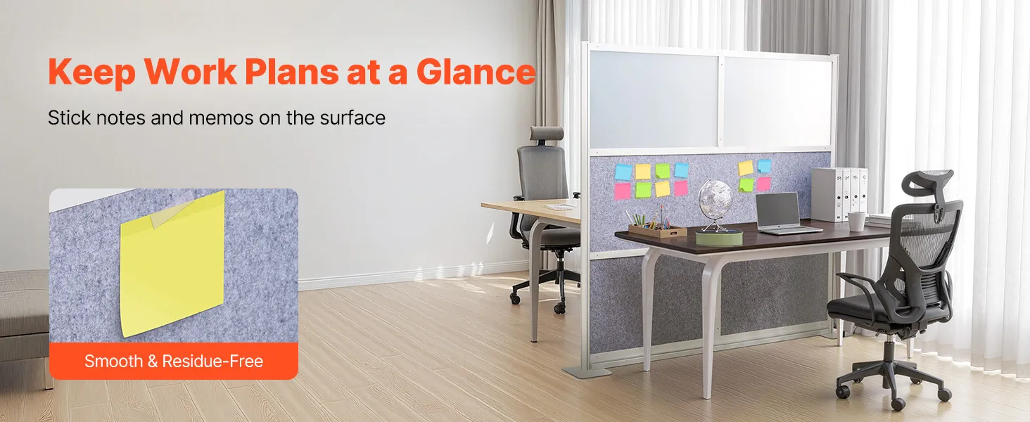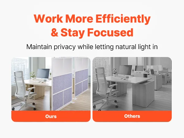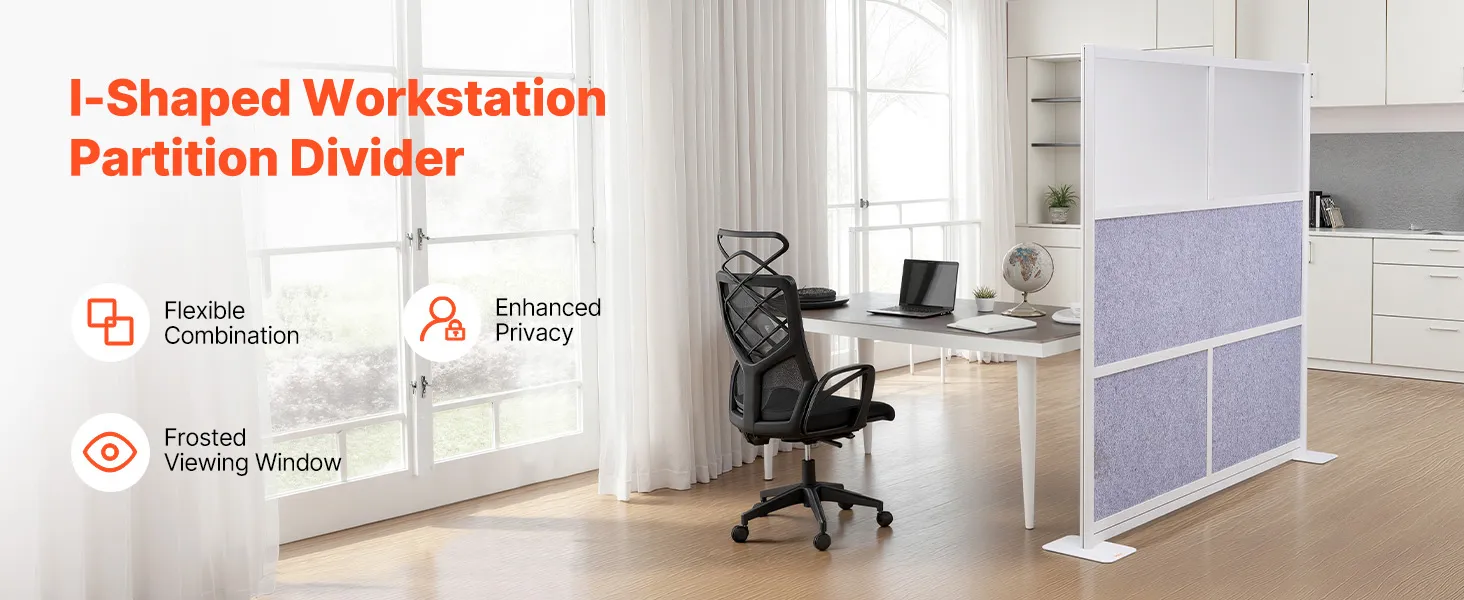 VEVOR’s office privacy partition features frosted acrylic windows that block visual distractions, keep your work private, and let in natural light—helping you stay focused and work more efficiently.