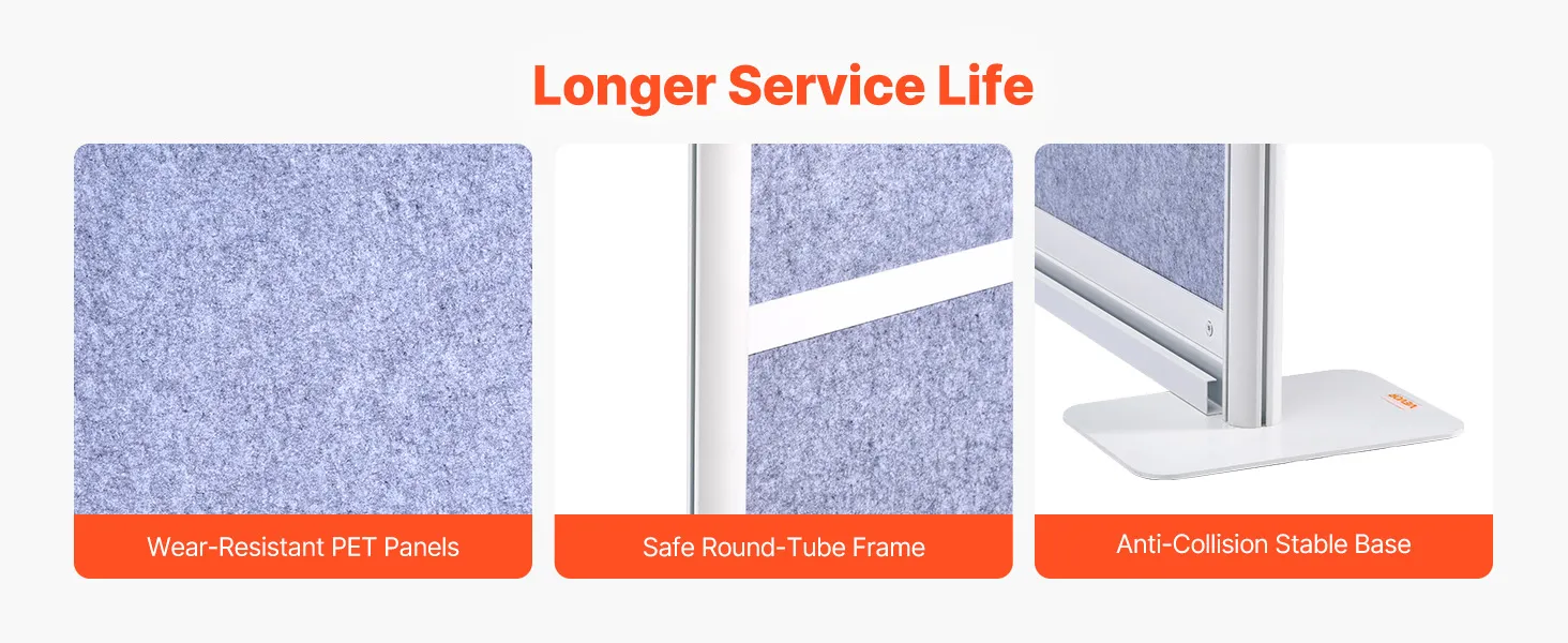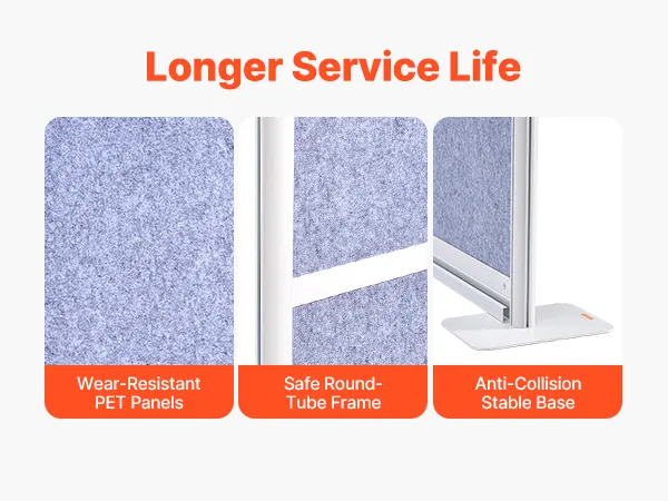 The freestanding office cubicle divider features wear-resistant PET panels, a sturdy round-tube frame, and a stable, anti-collision base, delivering long-lasting durability and a sleek, modern look.