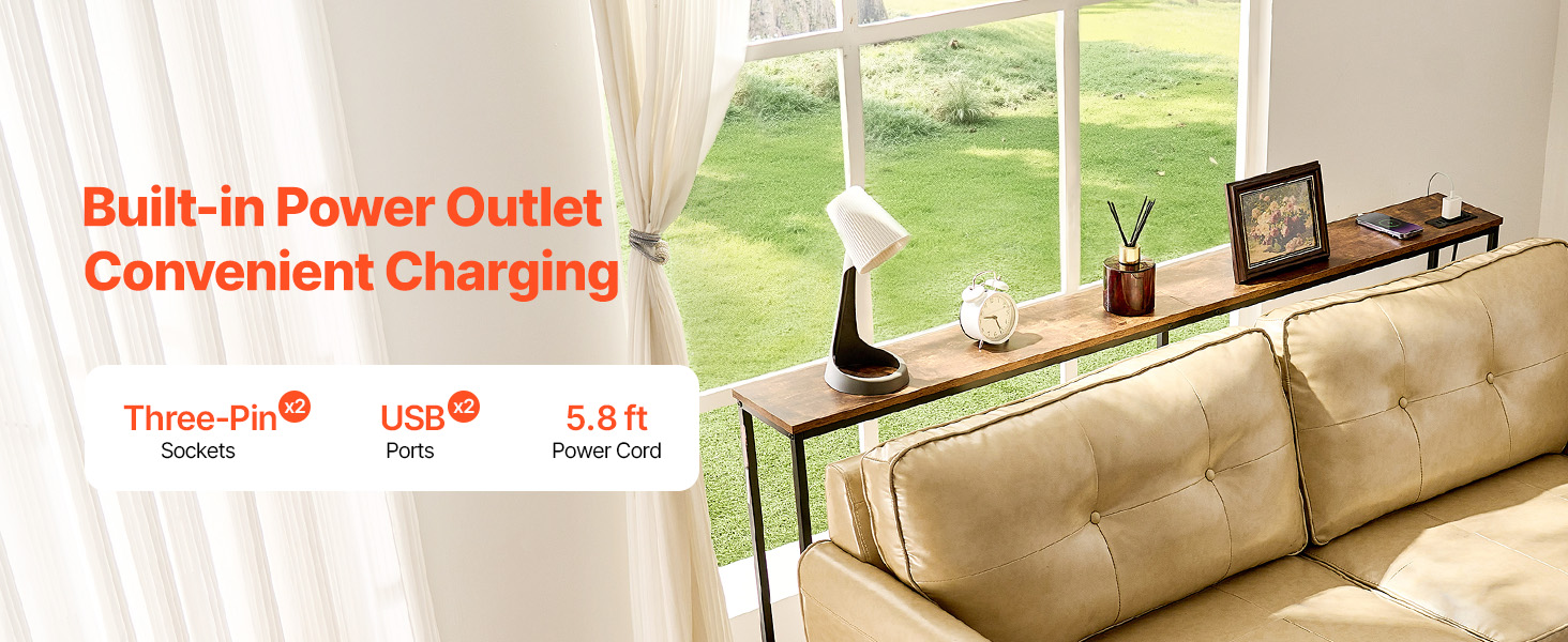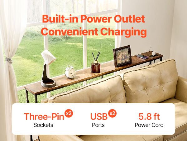 • Convenient Built-in Outlets: Our behind-couch table has 2 three-prong outlets, 2 USB ports, and a 70-inch power cord. You can quickly charge your phone, power lamps, laptops, and other devices – making your daily routines much more convenient.