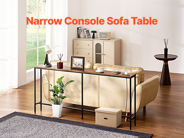 • Sturdy and Durable Design: Our narrow console sofa table is crafted from thick MDF wood and a sturdy metal frame, supporting up to 100 lbs (45.3 kg). It includes 4 adjustable feet to ensure stability on uneven floors and helps avoid damage to your flooring. The anti-tip device ensures additional stability and security.
