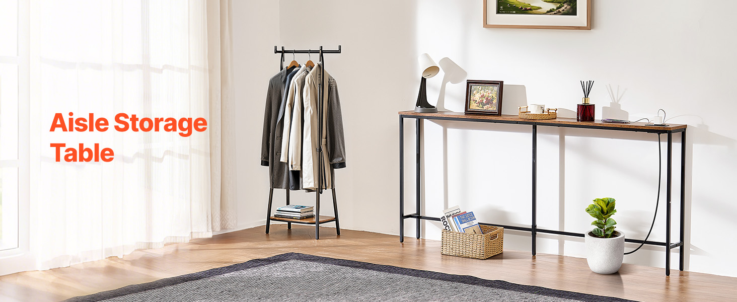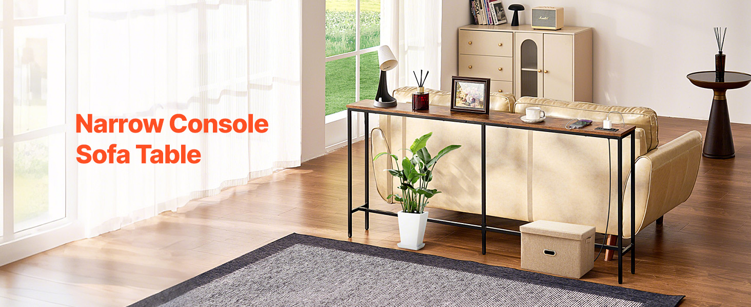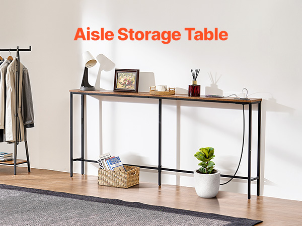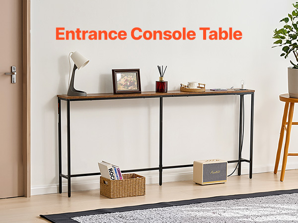 VEVOR вузький консольний стіл 180 см з розетками – тонкий стіл за диван з металевим каркасом для передпокою та вітальні