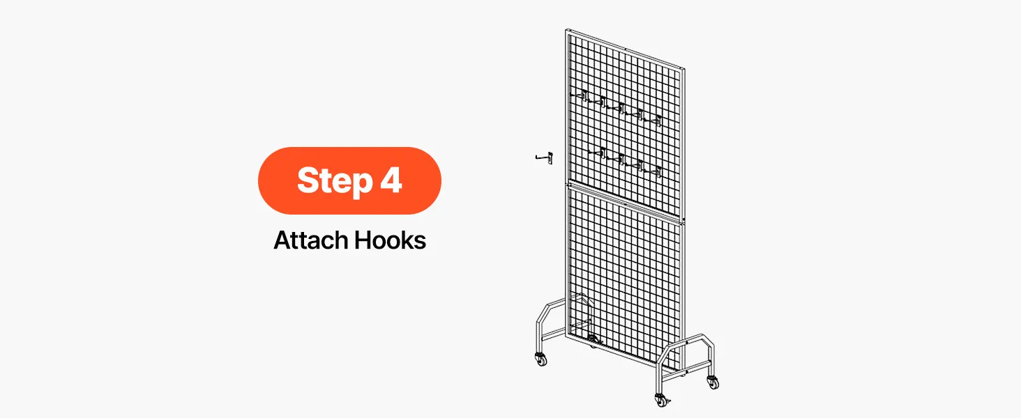 Our grid wall comes with 20 pcs 4 in hooks for direct display & organization