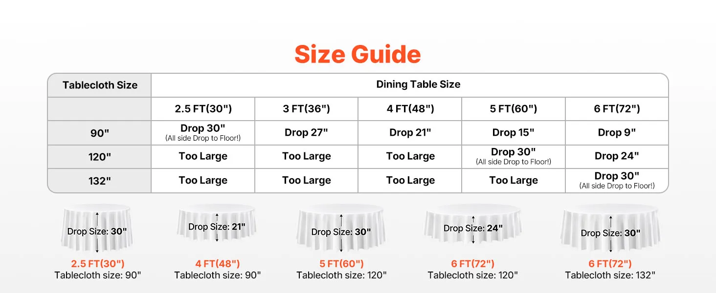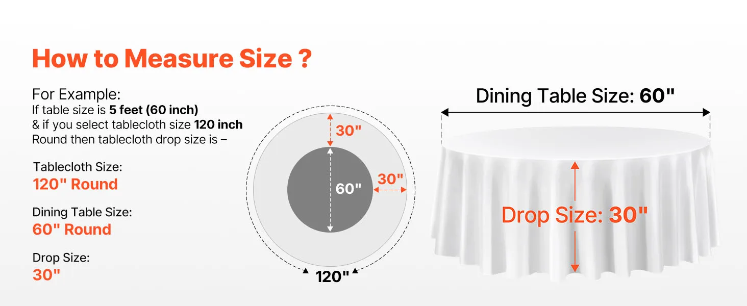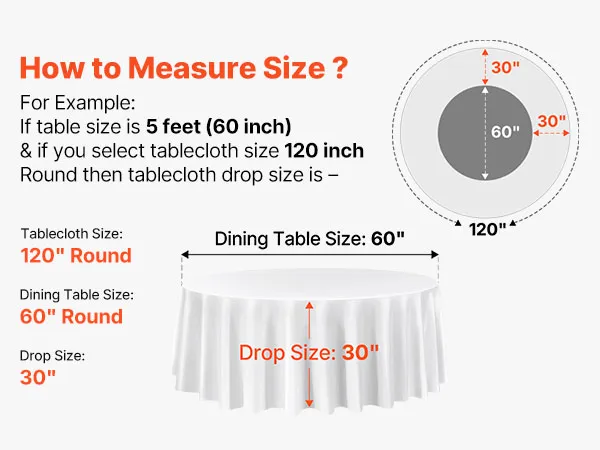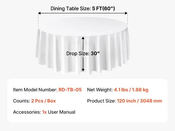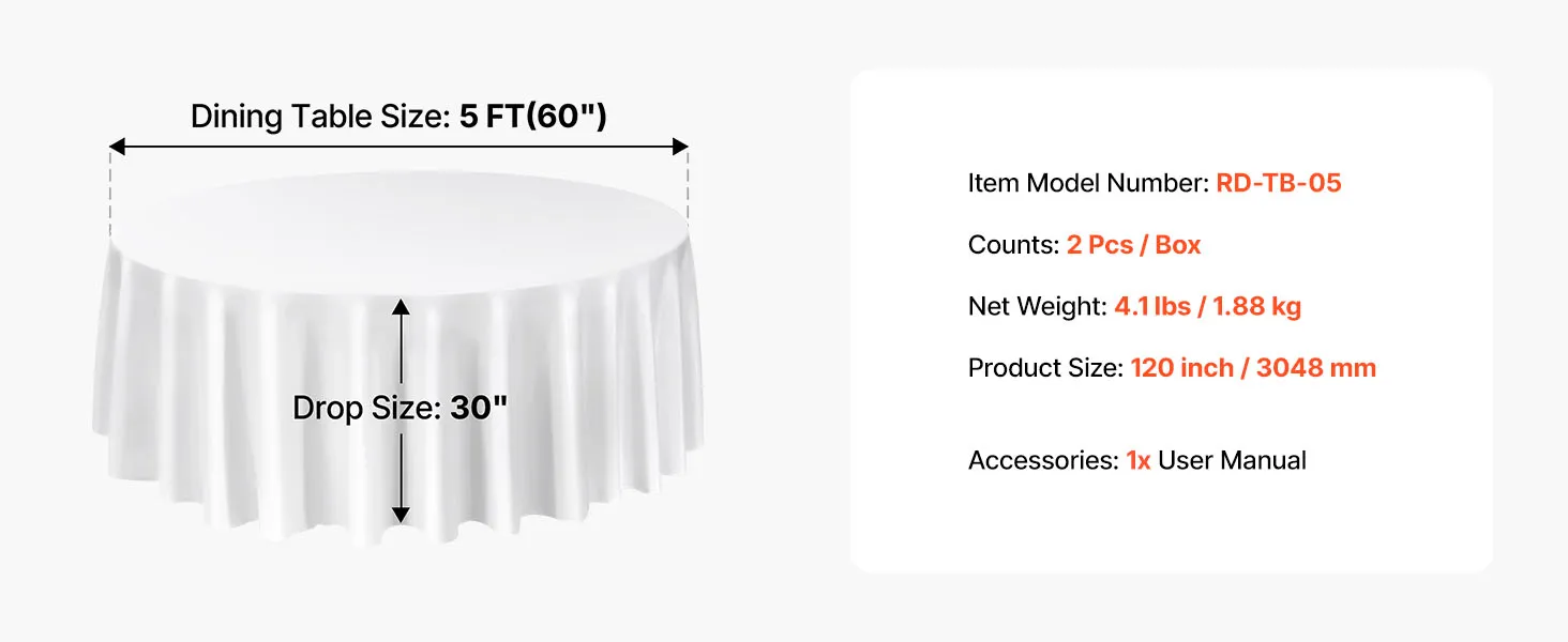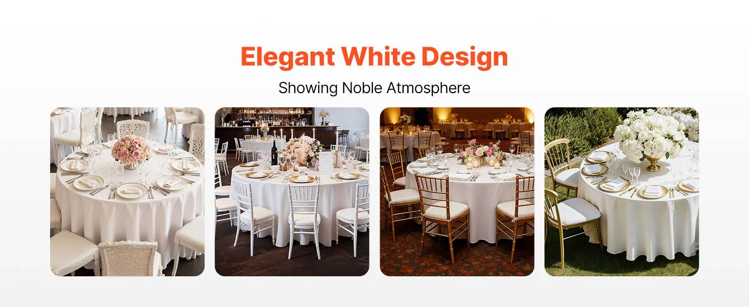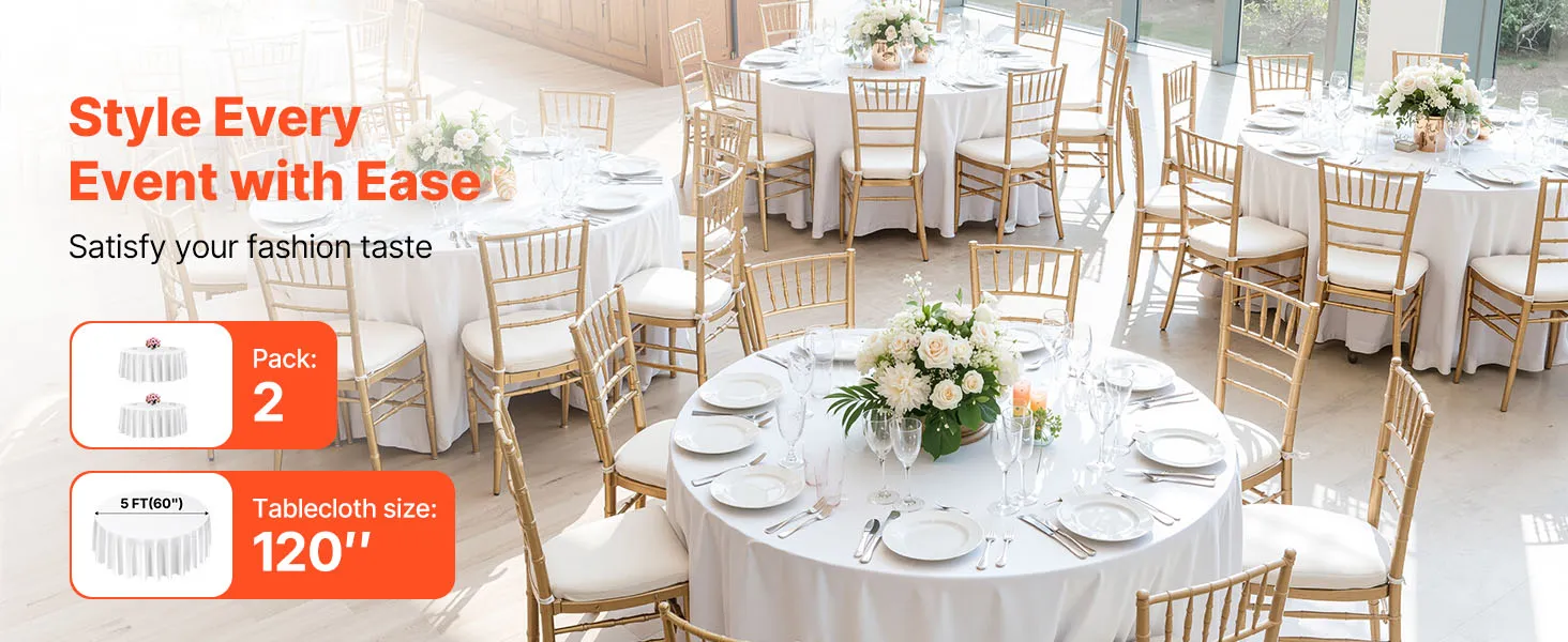 VEVOR White Round Tablecloths 2 Pack, 120 Inches in Diameter, Stain- & Wrinkle- Resistant, Machine Washable Table Clothes, Polyester Fabric Table Covers for Wedding, Party, Banquet, Formal Events