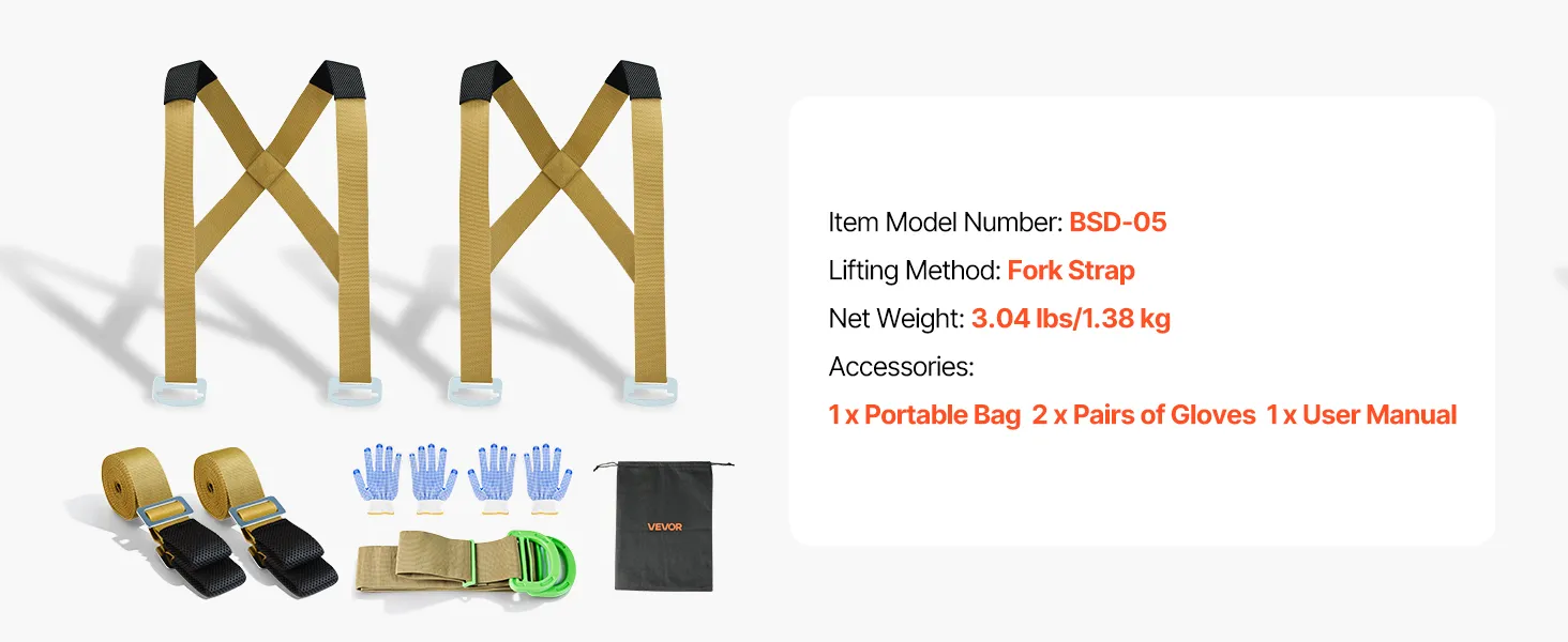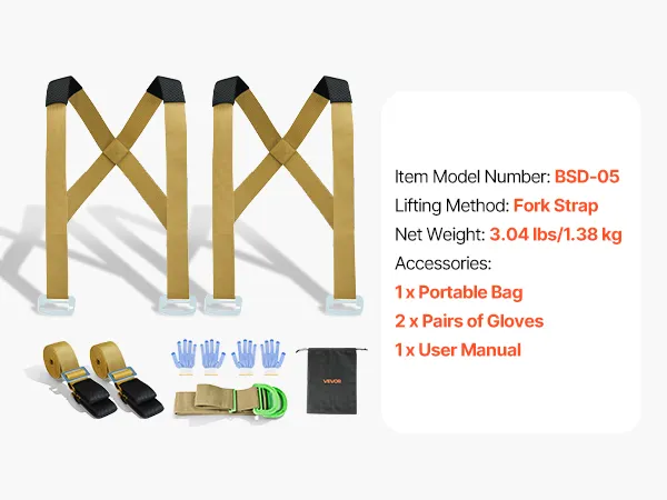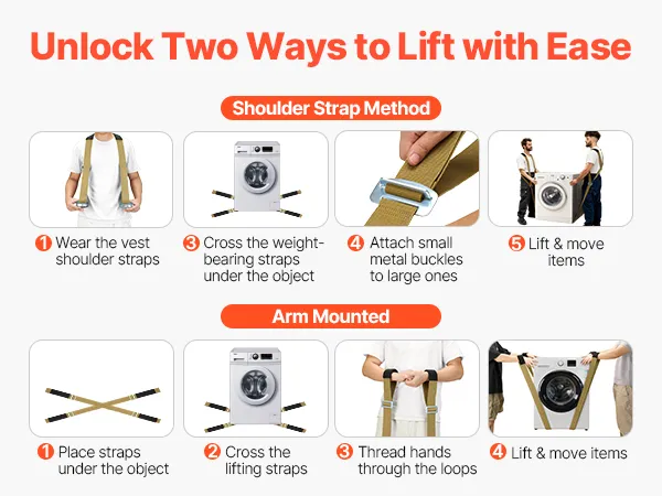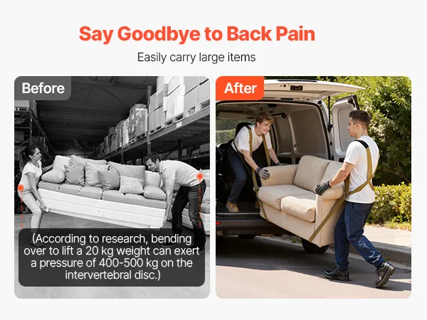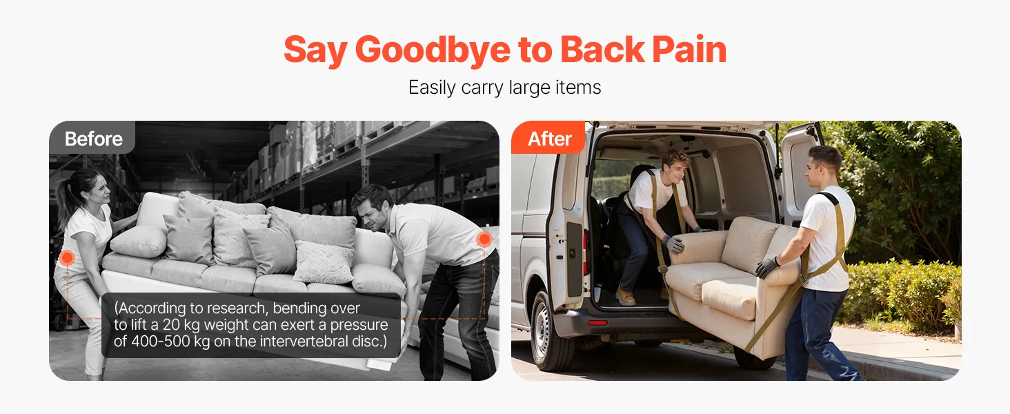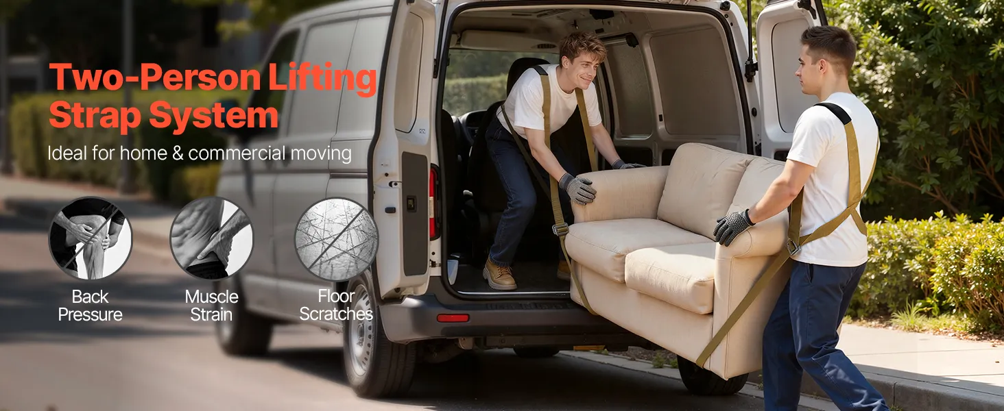 VEVOR комплект регульованих ременів для підйому меблів на 2 особи з лямками, ручним ременем, рукавичками, вантажність 450 кг