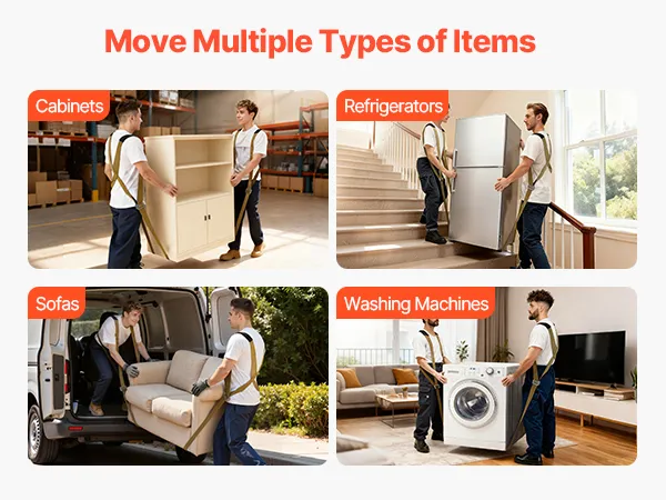 • Non-Slip Gloves & Storage Bag: Including 2 pairs of wear-resistant gloves, a non-slip pad, and a storage bag, the refrigerator moving strap enhances grip, reducing hand slippage and friction damage. Used with the sling, it lowers risks for stable lifting