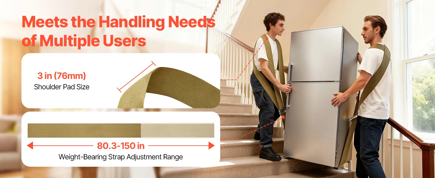 Our refrigerator moving strap is suitable for home, office, and commercial use, making it easy to move large items like cabinets, sofas, refrigerators, and washing machines. It reduces stress and risk during lifting, allowing you to complete tasks more efficiently in your daily life and work.