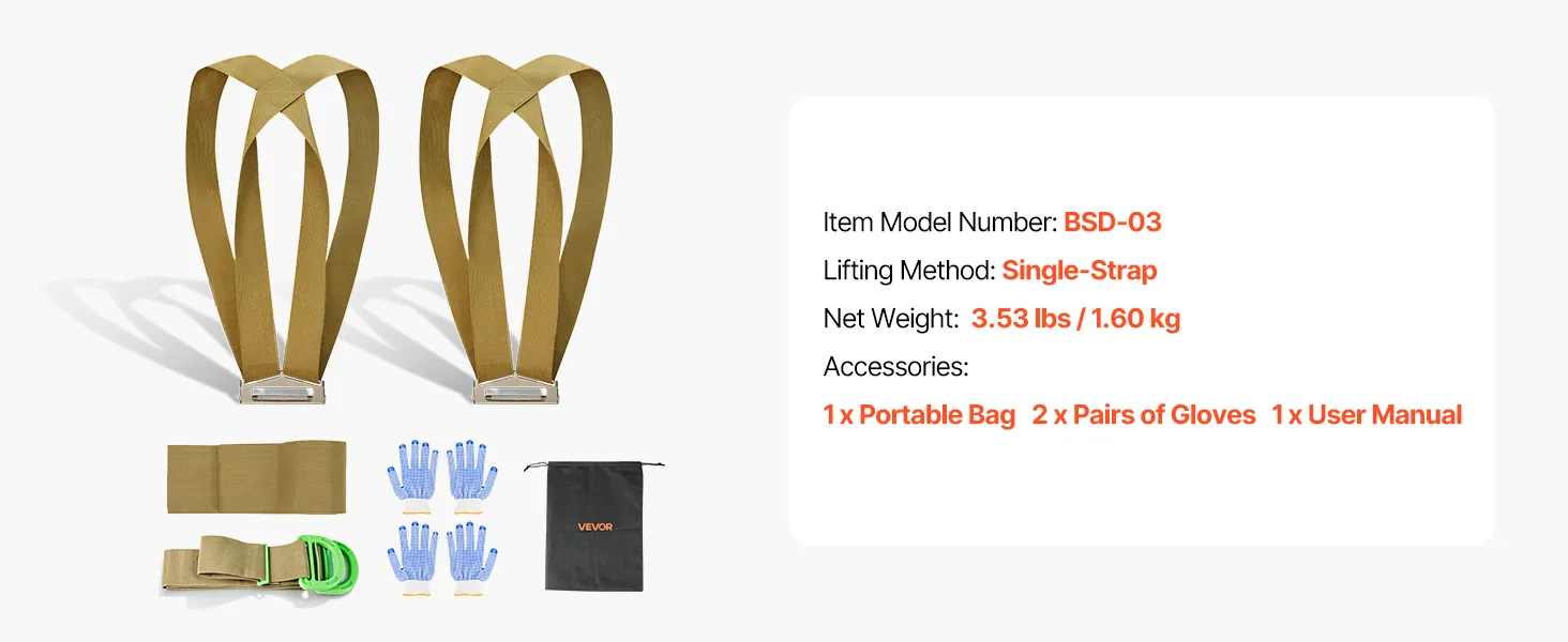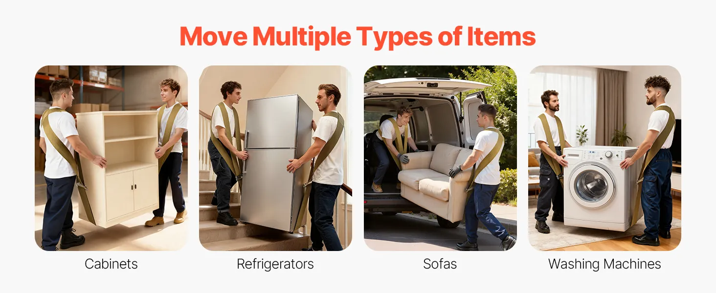 Using a forearm sling significantly improves efficiency and reduces risk. Compared to lifting with your bare hands, the moving strap provides stable support, reducing the risk of accidental strain. Whether it's large furniture or appliances, you can move them confidently and quickly.