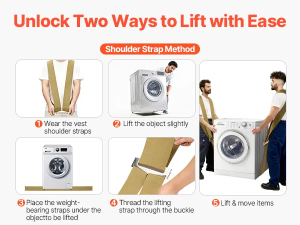 VEVOR Moving Straps, 2-Person Lifting and Moving System with 2 Harness Straps, 1 Load-bearing Strap & 1 Handheld Strap, Adjustable Lifting Shoulder Straps Move Furniture Appliances Mattresses