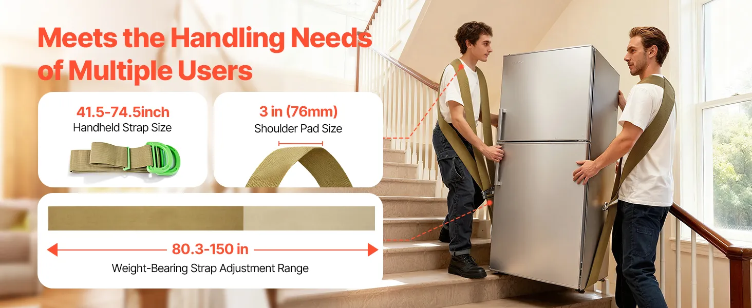 Our refrigerator moving strap is suitable for home, office, and commercial use, making it easy to move large items like cabinets, sofas, refrigerators, and washing machines. It reduces stress and risk during lifting, allowing you to complete tasks more efficiently in your daily life and work.
