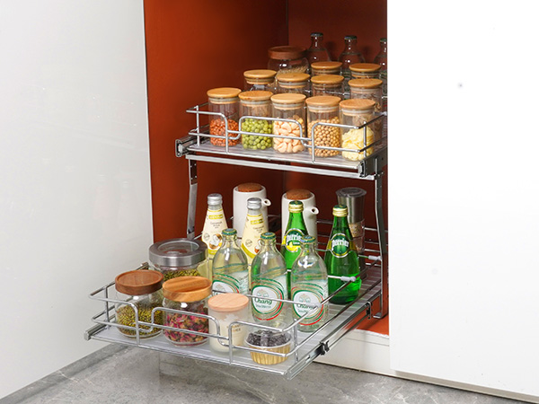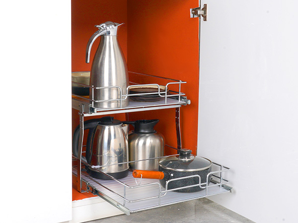 • Convenient and Practical Storage Solution: Our 2-tier pull out cabinet shelf can create larger storage space in a small cabinet; you can use it in any cabinet. You can place pots and pans, seasoning jars, food jars, cleaning supplies, spice racks, and other items, significantly saving your storage space.