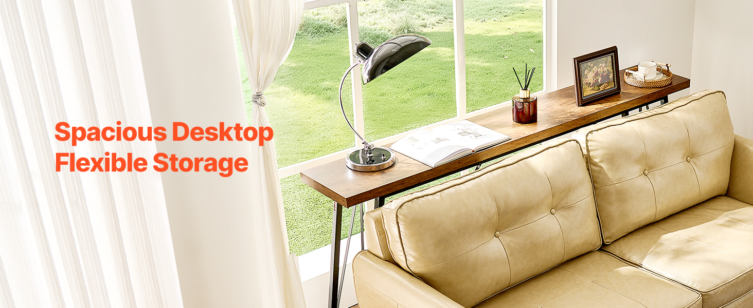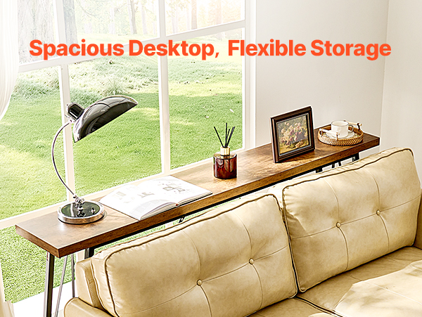 Our behind-couch table features a spacious tabletop, perfect for displaying your favorite decorations, art pieces, or family photos and storing items like your phone and laptop.