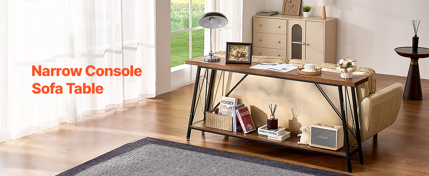Tired of unused corners? This narrow console sofa table fits ideally in tight spaces, offering room for phones, decor, keys, hats, and more, making your daily life more organized and convenient.