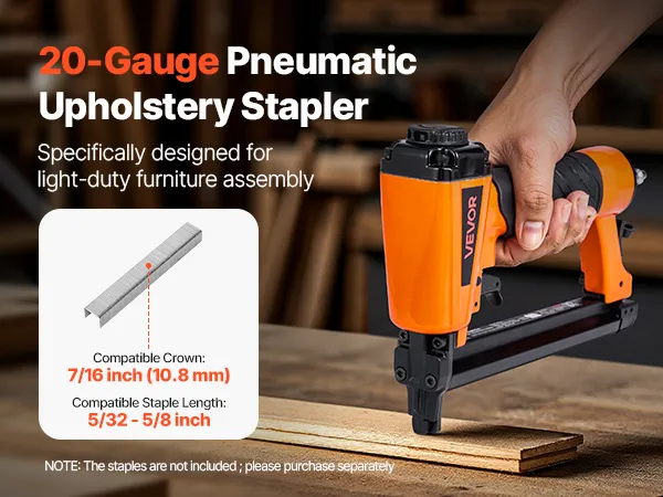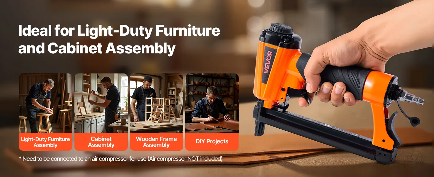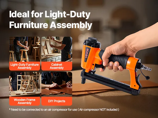 Suitable for upholstering, light-duty furniture assembly, woodworking, cabinet assembly, picture framing, decorative trim installation, crafting sofas, chairs, and more DIY projects. It needs to be connected to an air compressor for use (air compressor not included)
