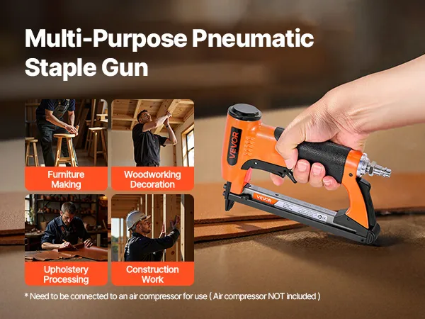 Suitable for upholstering, light-duty furniture assembly, woodworking, cabinet assembly, picture framing, decorative trim installation, crafting sofas, chairs, and more DIY projects. It needs to be connected to an air compressor for use (air compressor not included).