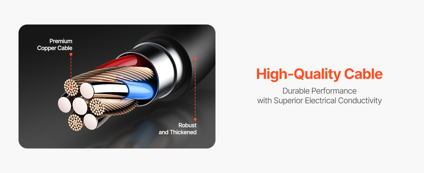 Built with premium cables, offering superior durability and enhanced conductivity for reliable performance.