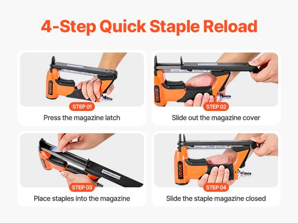 Equipped with a large-capacity loading magazine that holds up to 150pcs staples at once, this air stapler gun minimizes the need for frequent reloading and allows for more efficient operation. (Staples not included; please purchase separately)